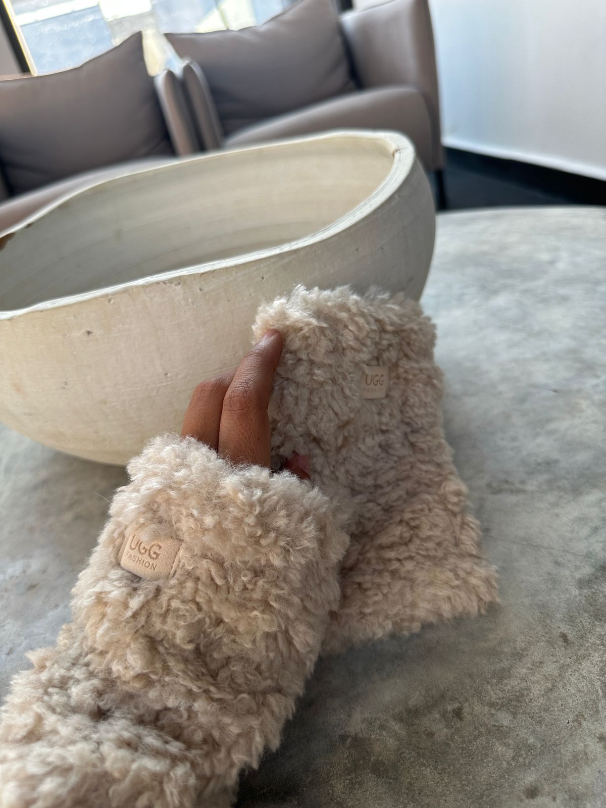 Descripción: Prepárate para enamorarte de la sensación más suave de esta temporada. Estos guantes tipo fuzzy son el accesorio perfecto para mantener tus manos calientitas con estilo. Su textura esponjosa crea una sensación ultra confortable desde el primer instante, y el diseño sin dedos te permite seguir usando tu celular, tomar tu café o manejar sin perder comodidad.