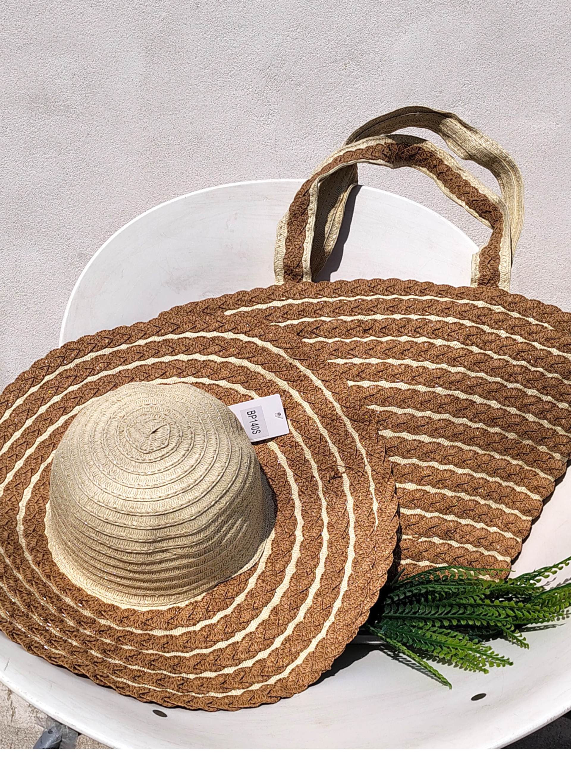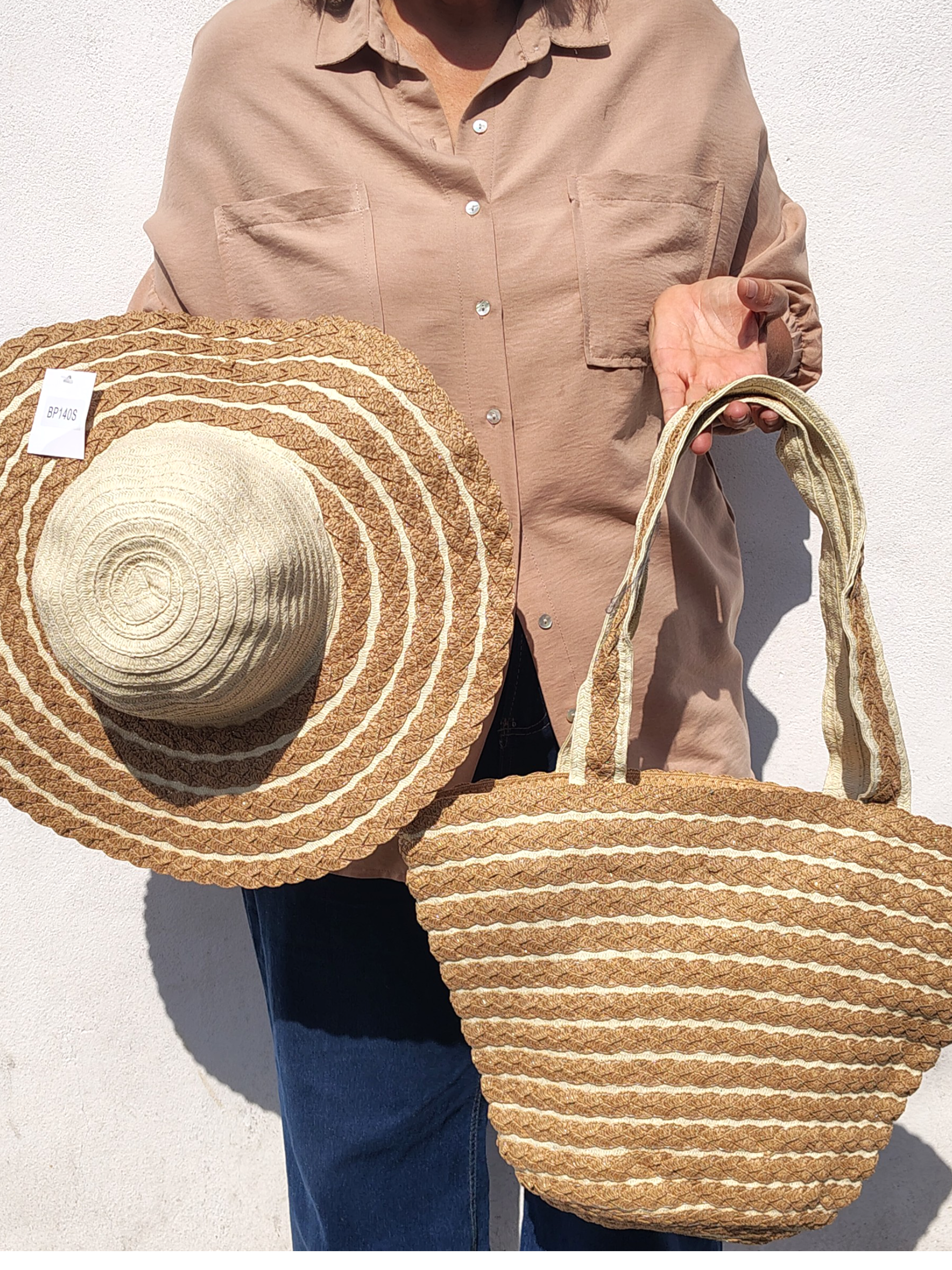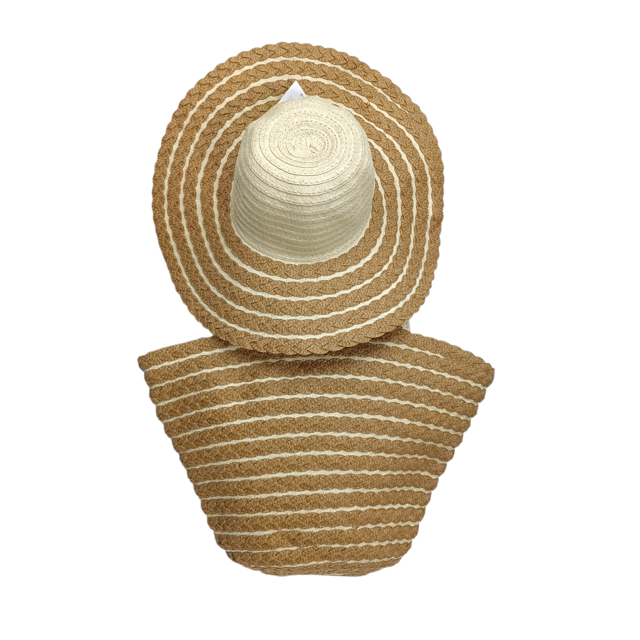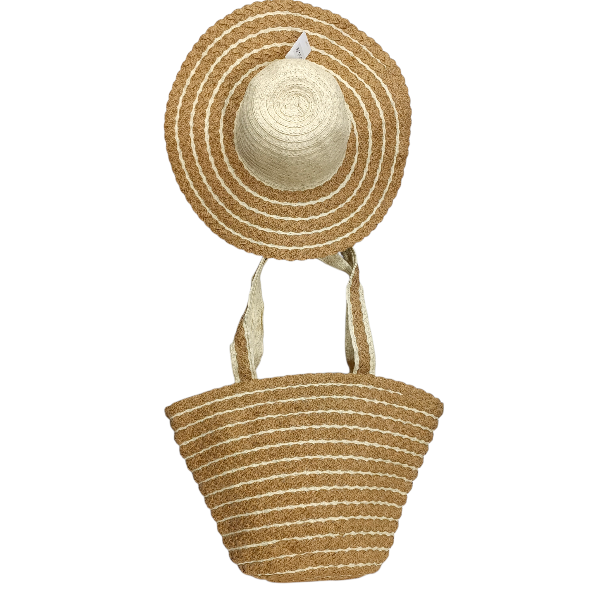 Combo Bolsa y Sombrero Rayas Color Arena Mod. 35 0140