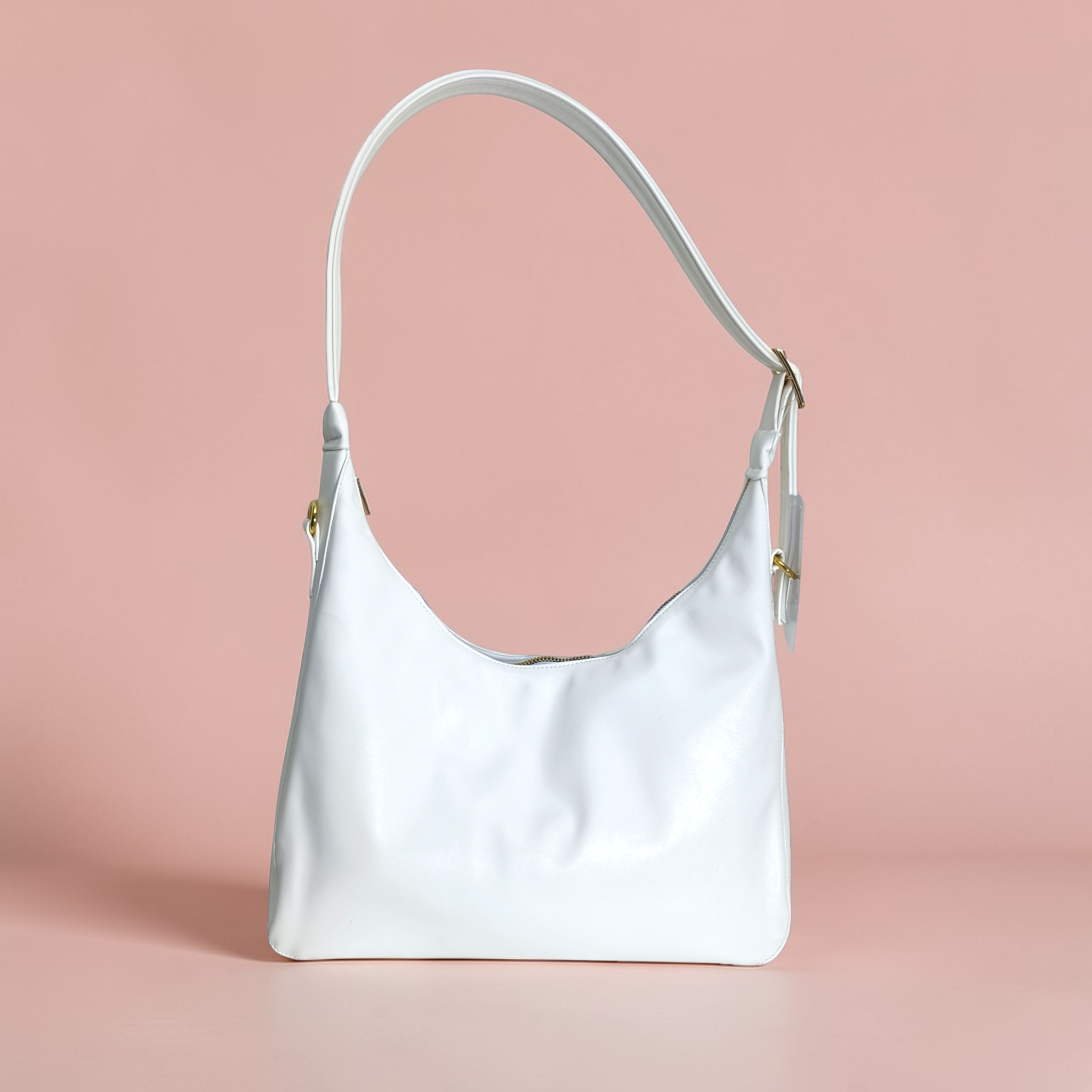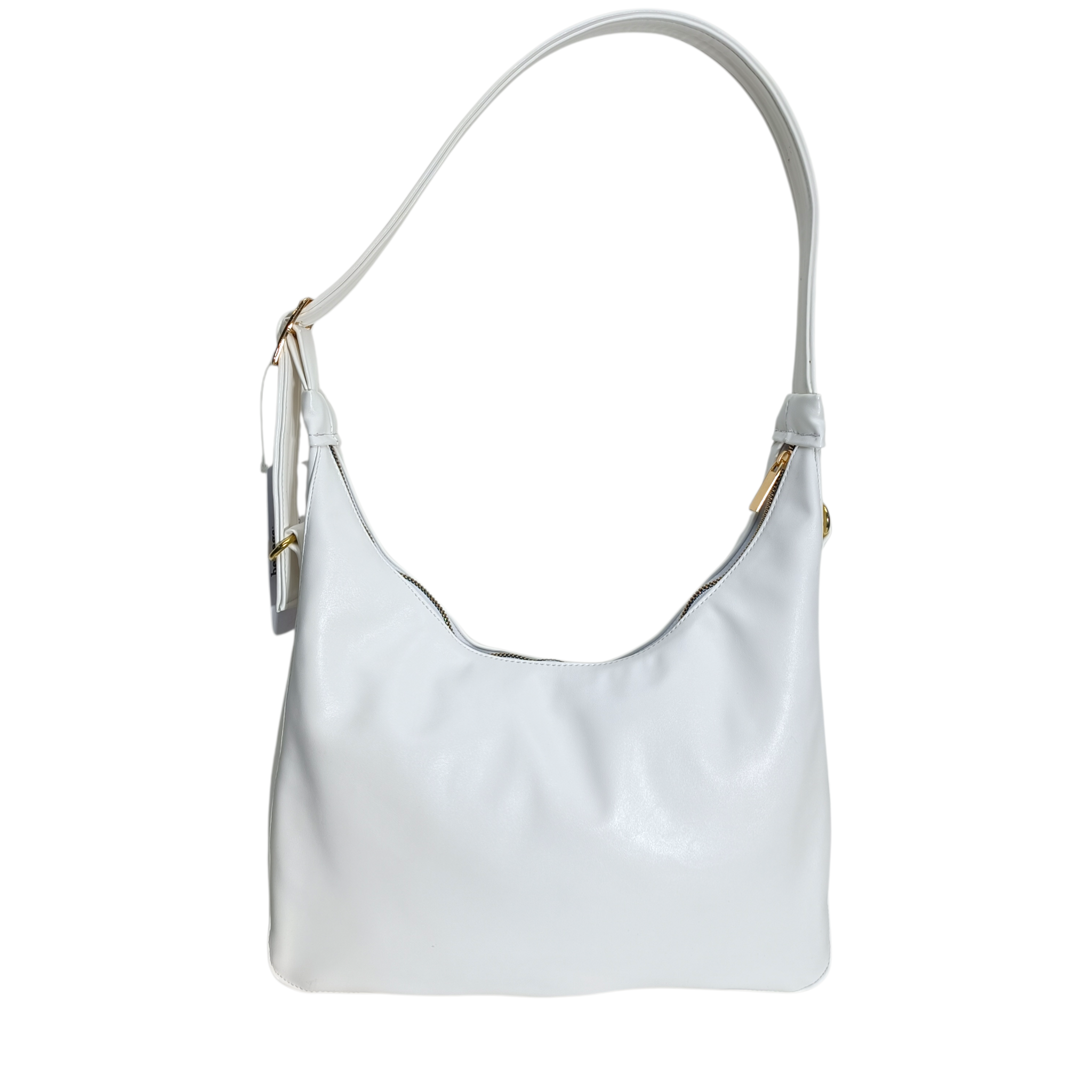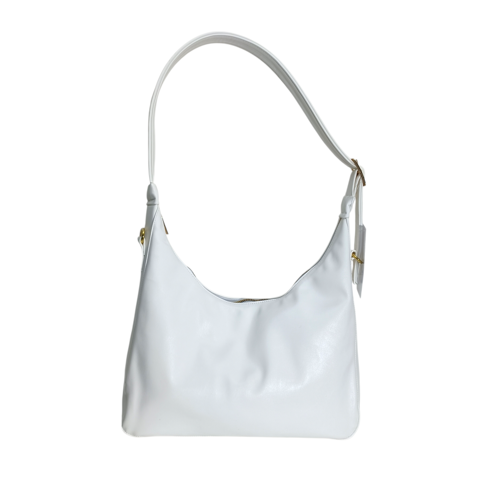 Descripción: Esta es una bolsa tipo hobo en color Blanco, con un diseño elegante y versátil. Está fabricada en un material resistente con textura sutil. Cuenta con una asa larga y ajustable, permitiendo llevarla cómodamente al hombro. Su diseño incluye detalles metálicos en dorado y un cierre superior para mayor seguridad. Ideal para el uso diario o para complementar un look sofisticado.