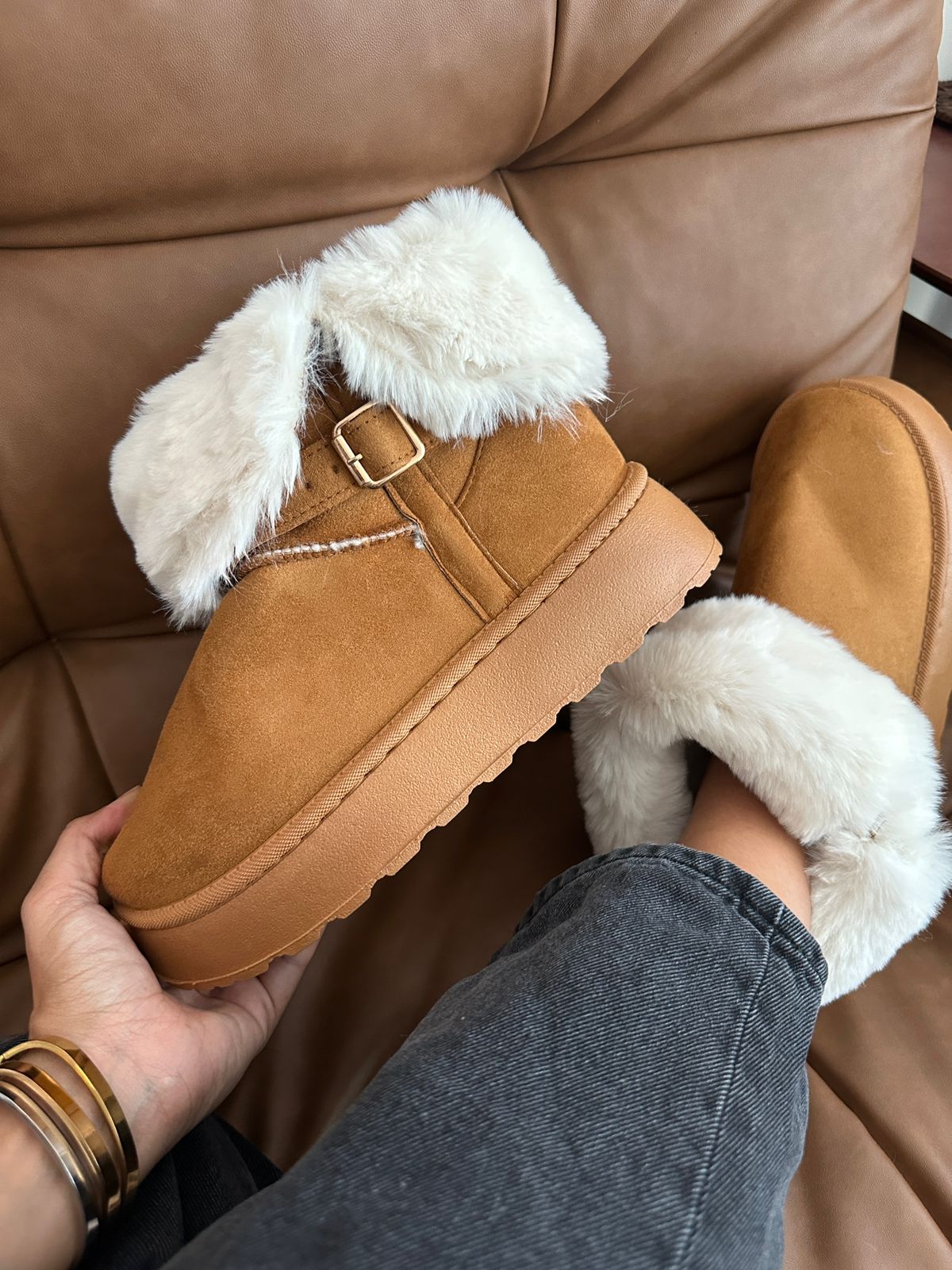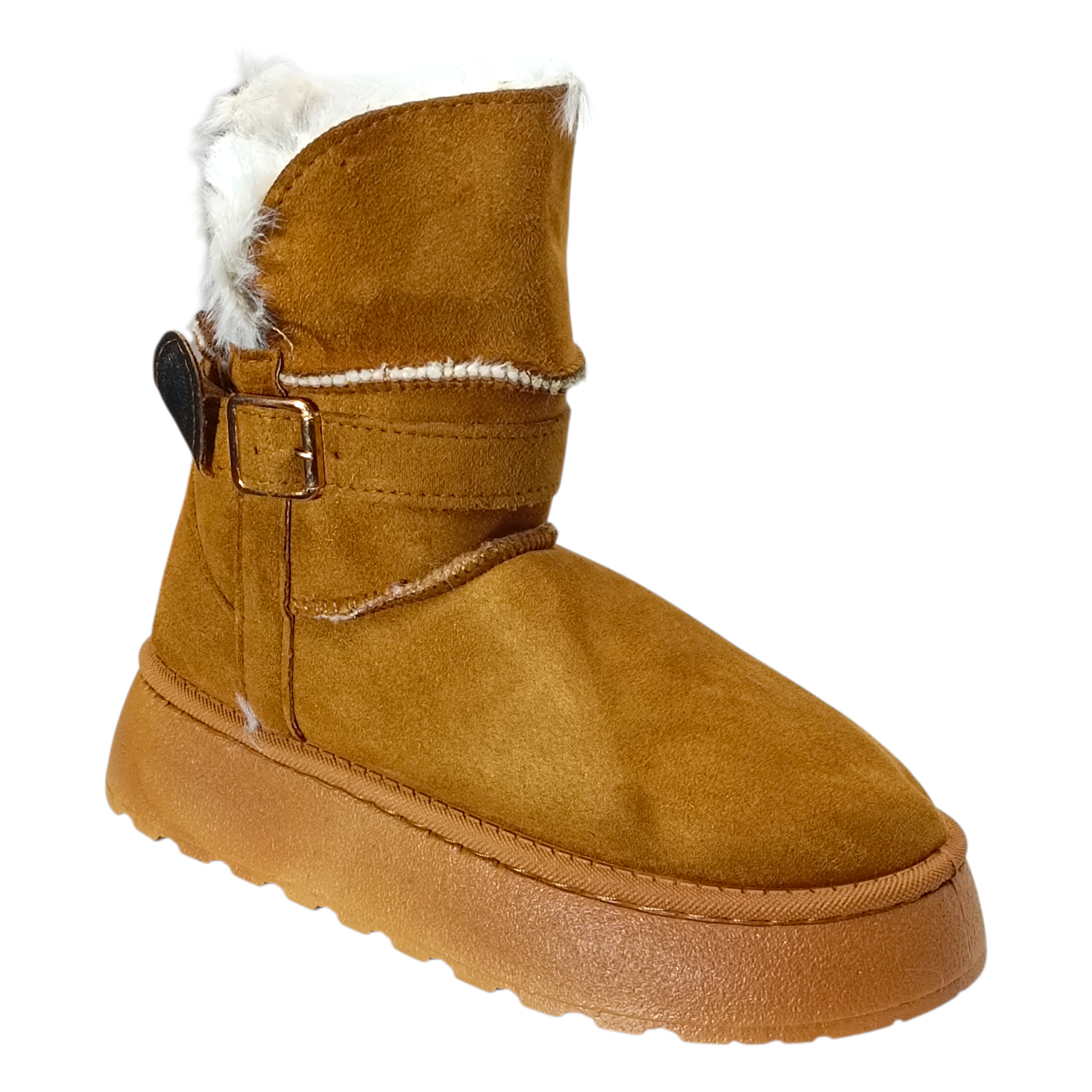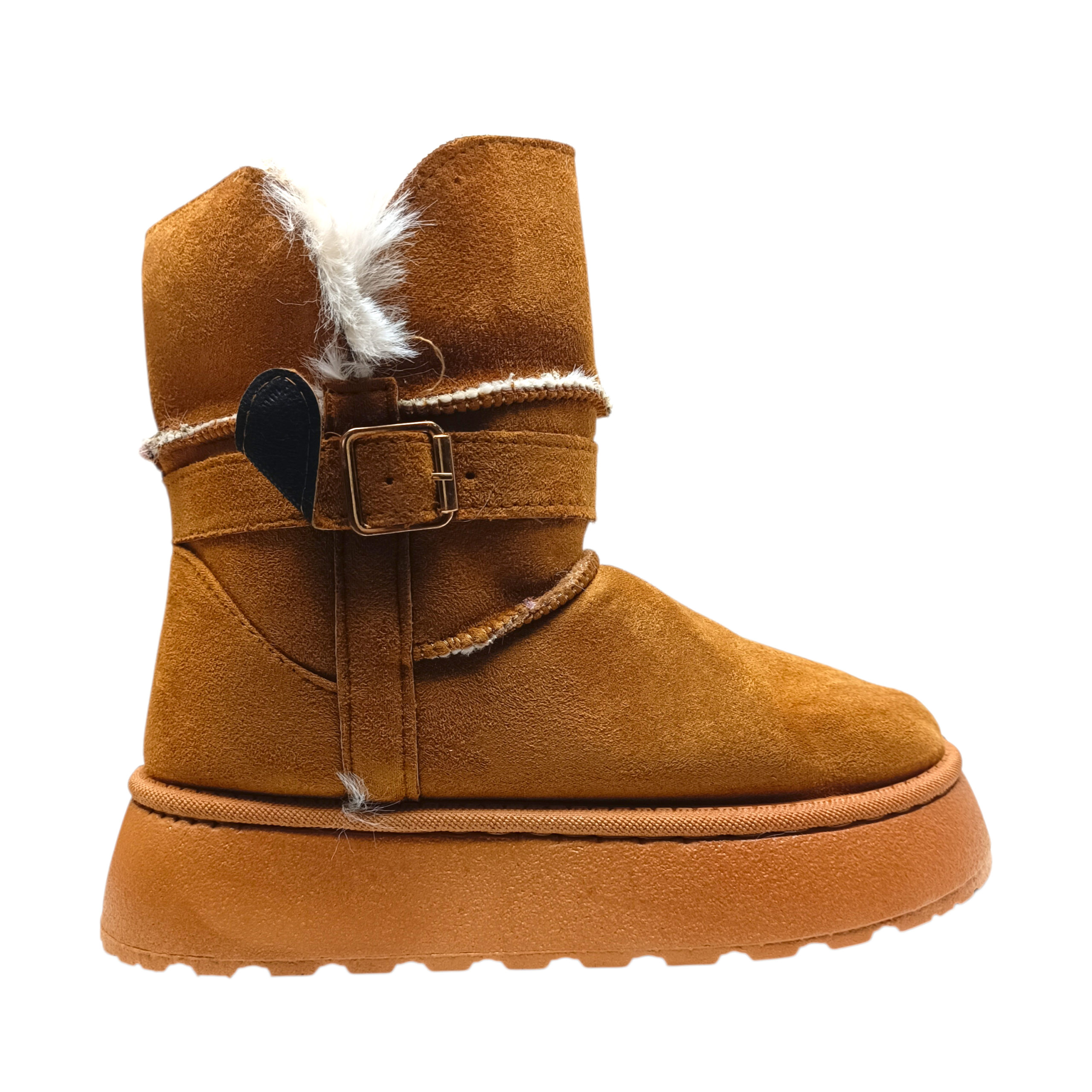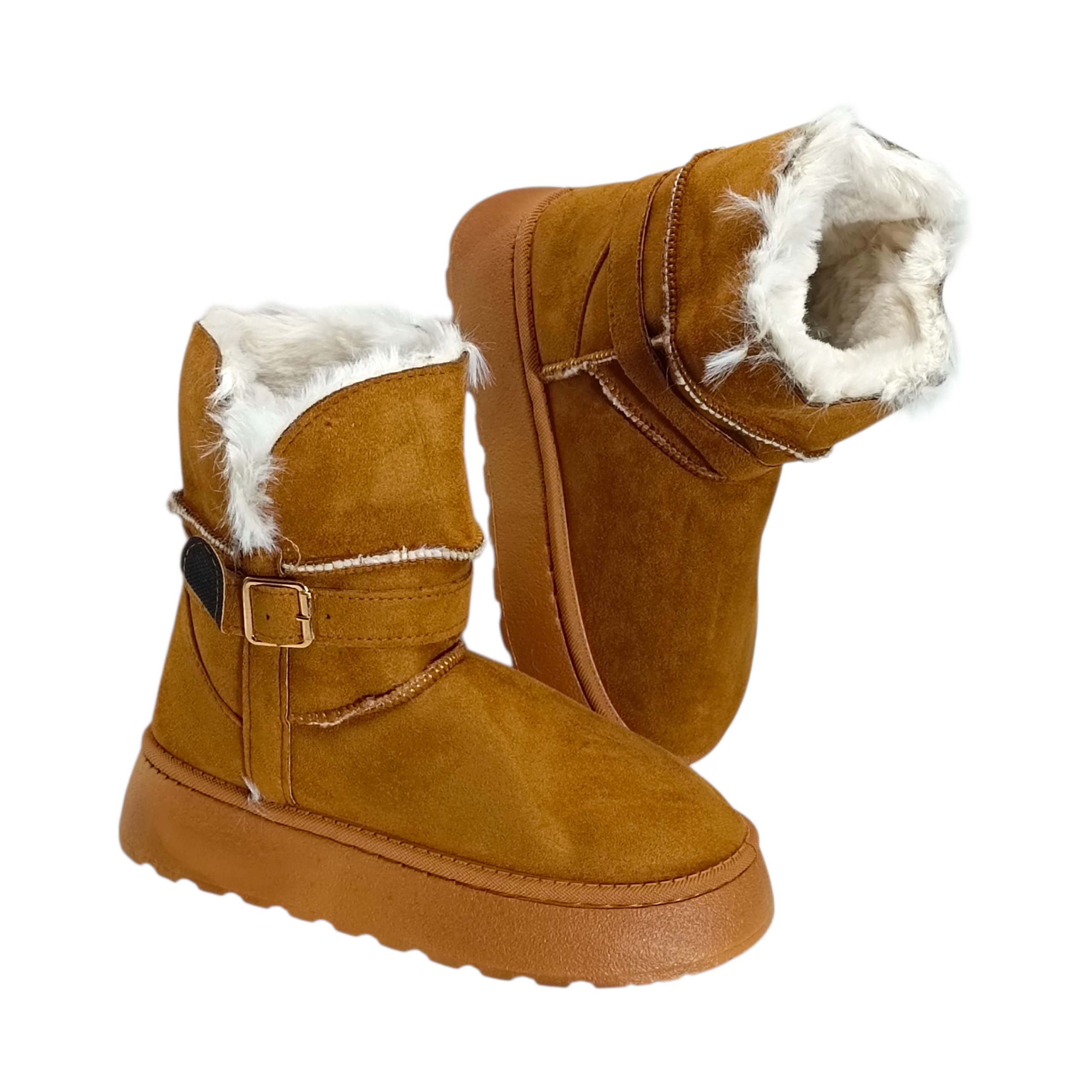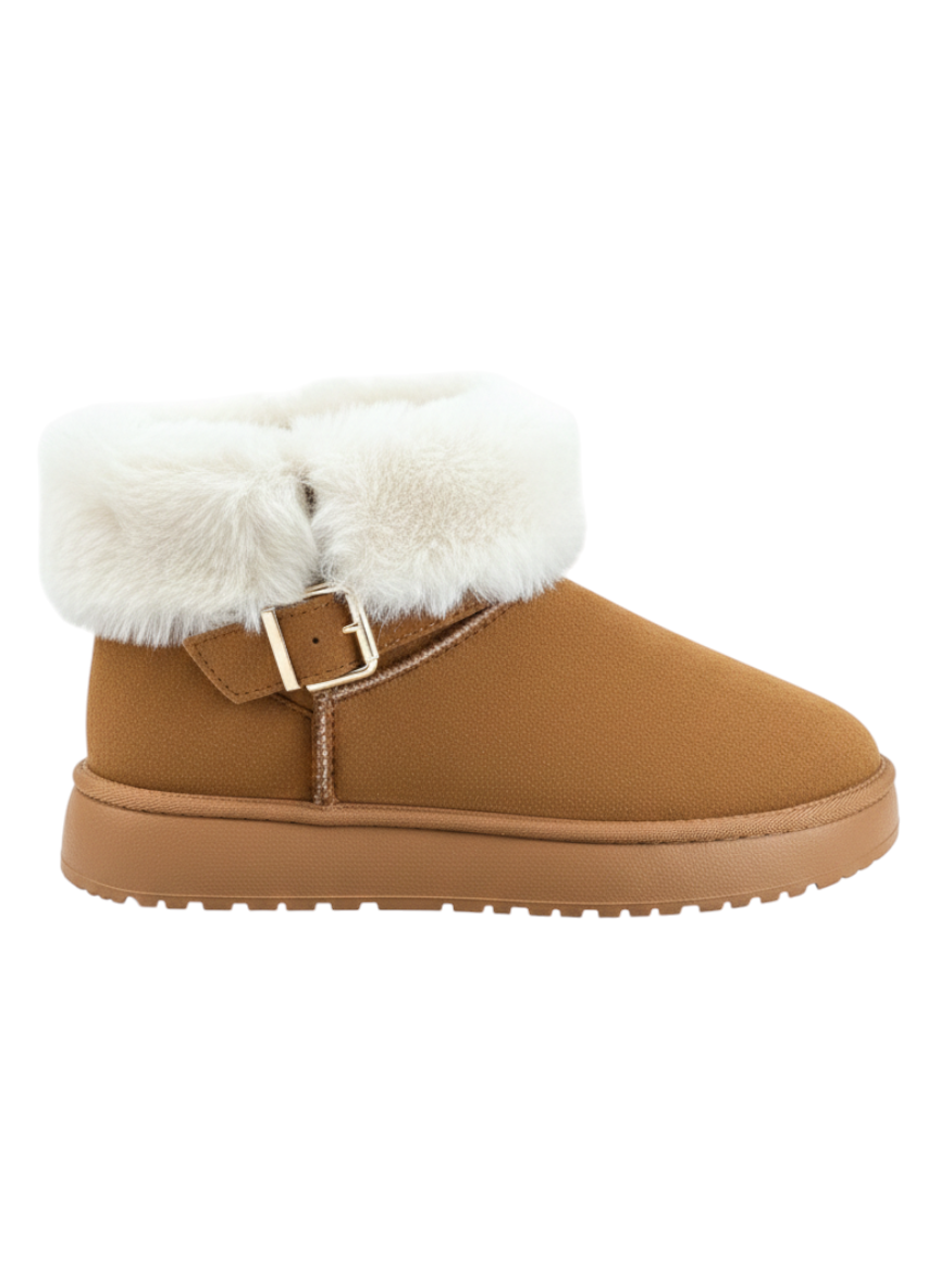 Descripción: Estas botas invernales camel combinan estilo y comodidad en un diseño moderno y sofisticado. Su acabado tipo gamuza aporta un toque elegante, mientras que el forro interno afelpado y el borde de peluche brindan una sensación de abrigo y suavidad inigualable, ideales para los días fríos. El detalle de la hebilla metálica lateral le da un acento chic que eleva cualquier outfit casual. Además, su suela gruesa y resistente ofrece estabilidad y confort para caminar con seguridad durante todo el día. Perfectas para quienes buscan calidez, practicidad y un look actual en una sola pieza.