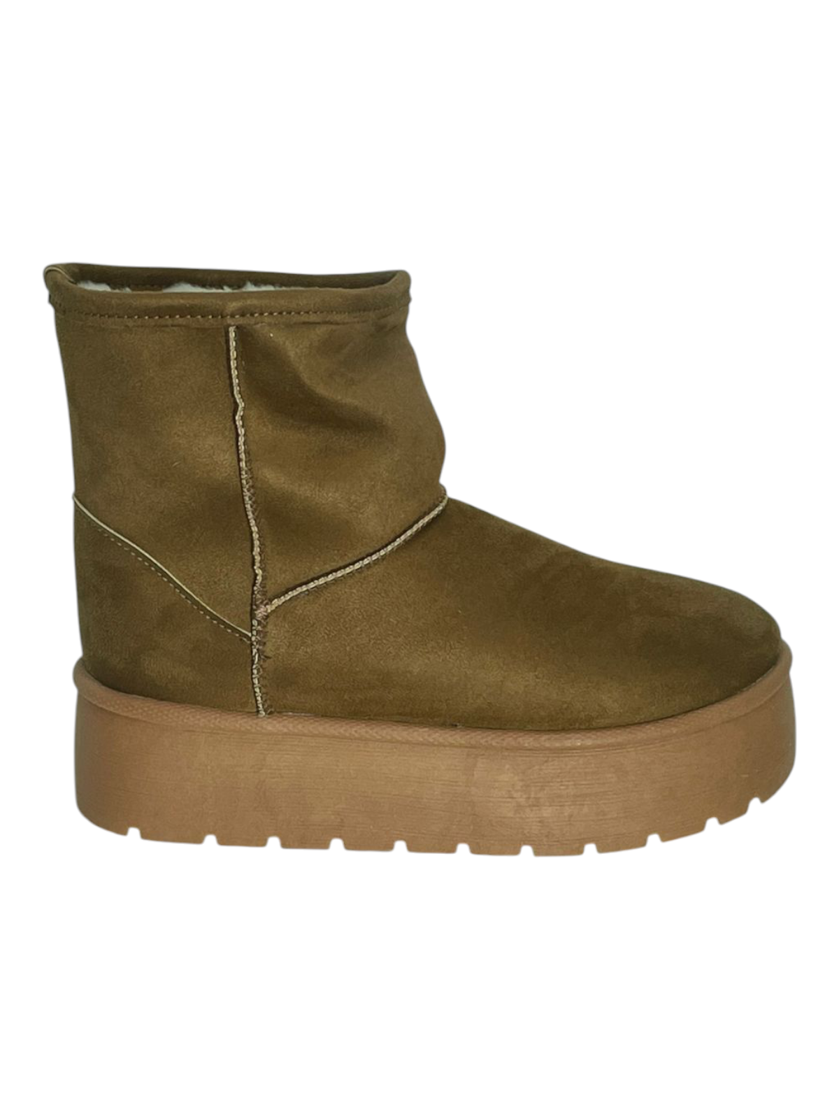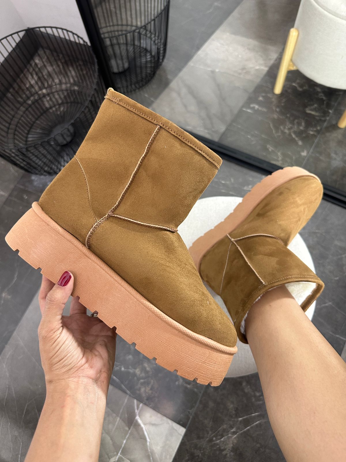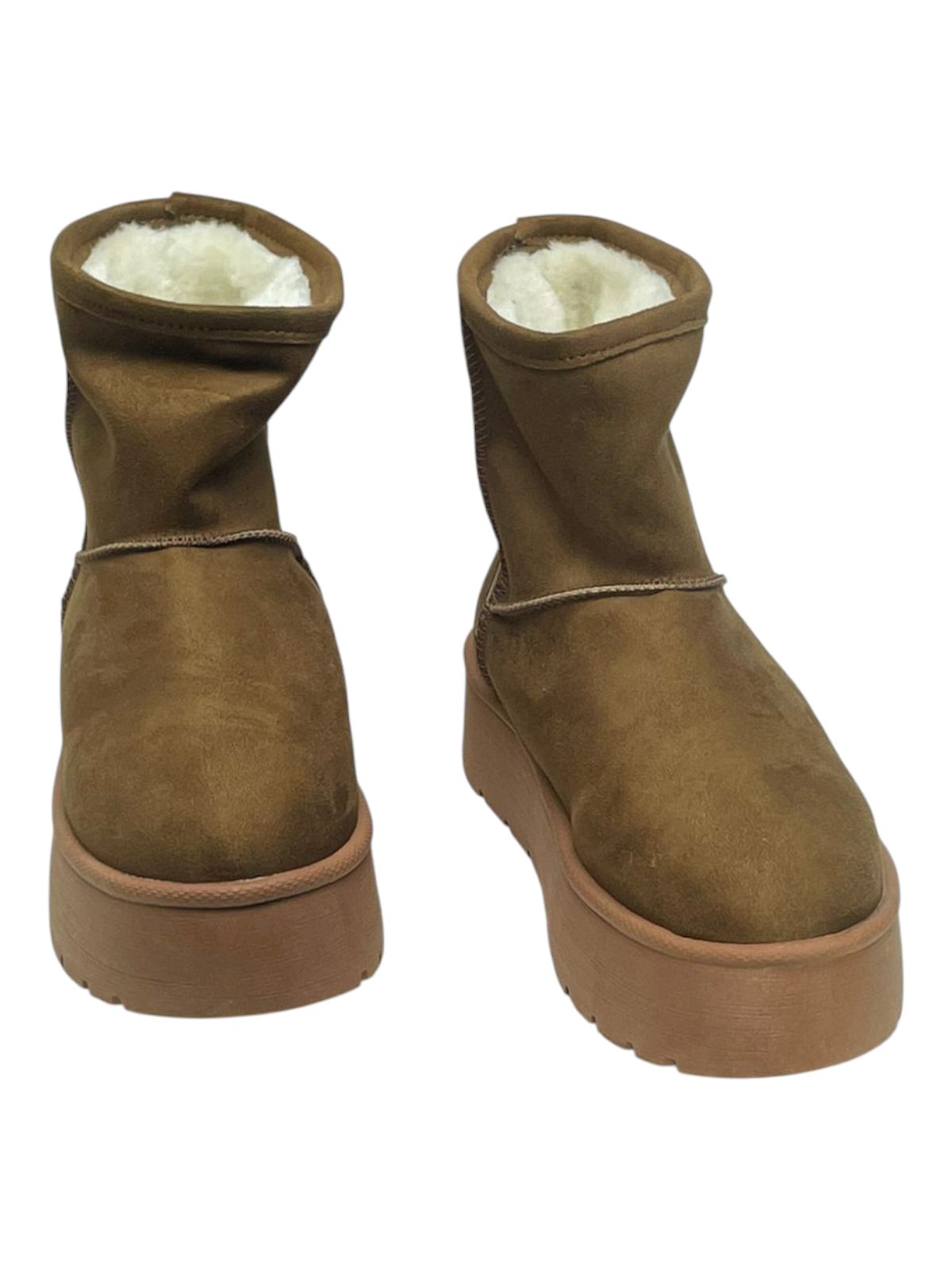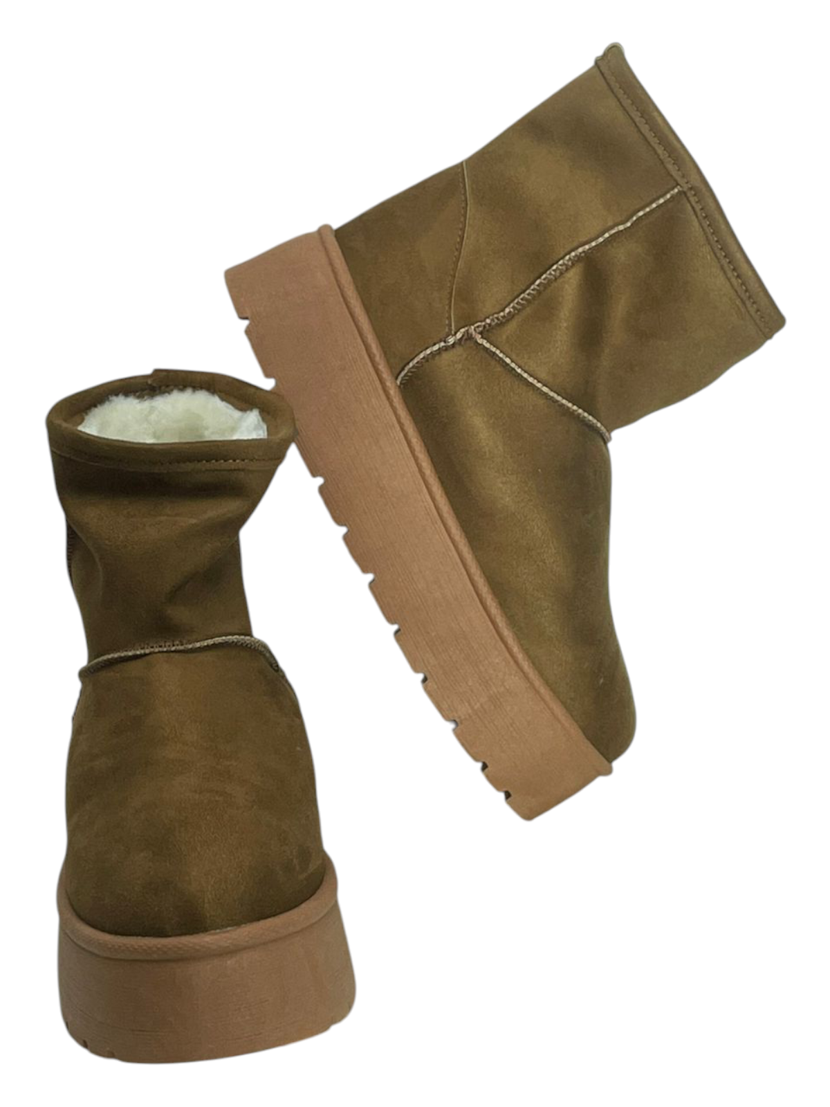 Confeccionados en un tono camel clásico, su exterior tipo gamuza combina a la perfección con una suela gruesa y antideslizante que aporta altura sin sacrificar comodidad.