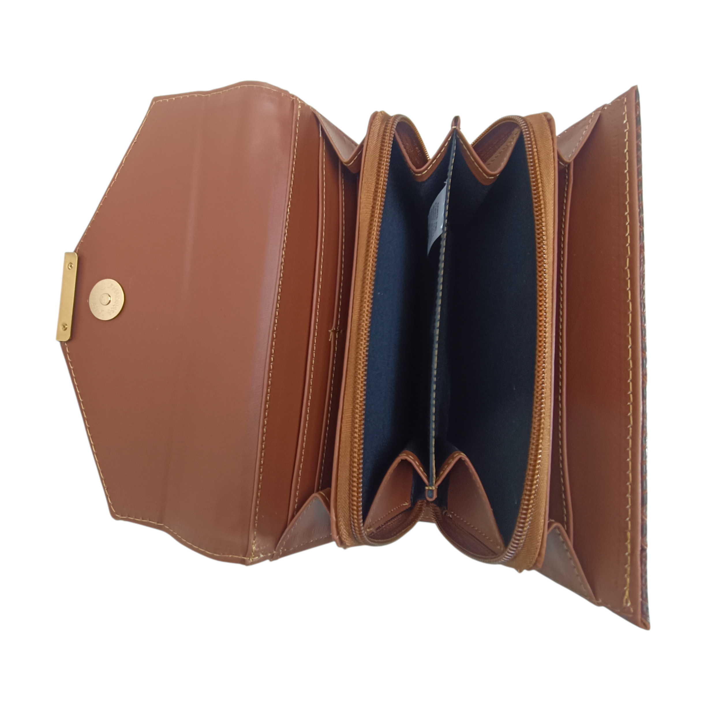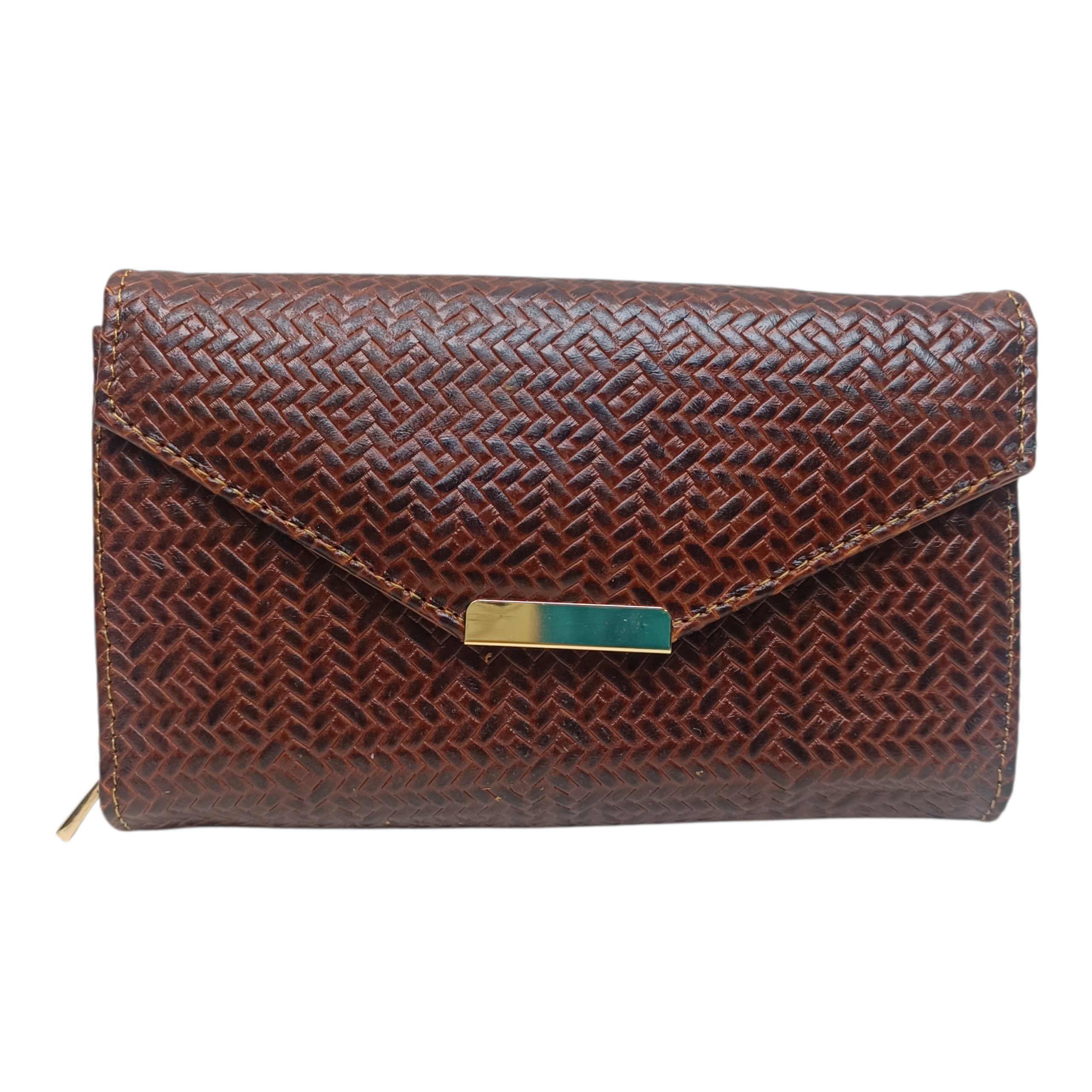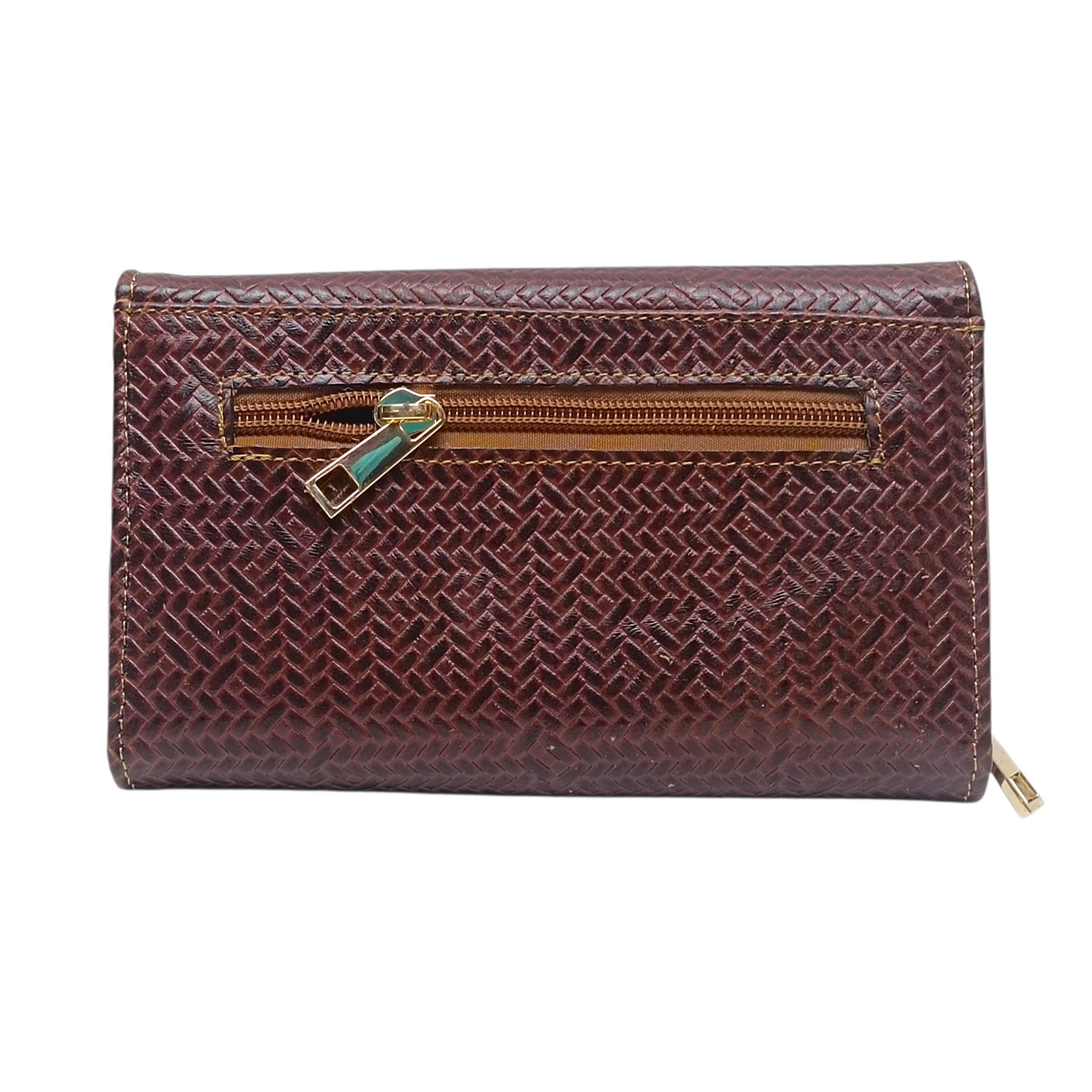 Cartera De Piel estilo Tejido Café Para Dama Mod. 10 1050