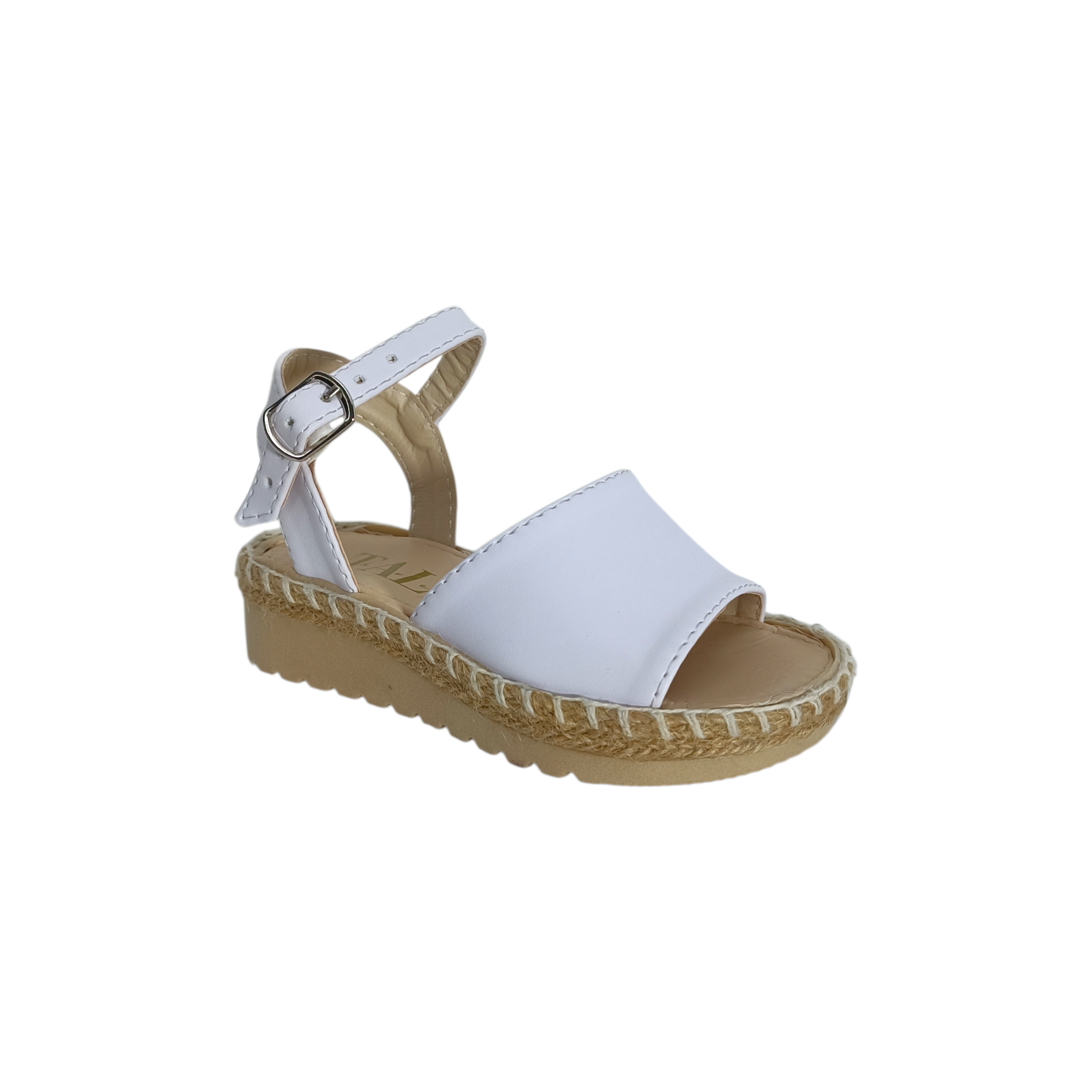 Estas hermosas alpargatas infantiles en color Blanco son el complemento ideal para darle un toque elegante y moderno a cualquier outfit. Su diseño combina un acabado brillante tipo piel metálica con suela estilo yute, creando un equilibrio perfecto entre frescura, tendencia y comodidad.