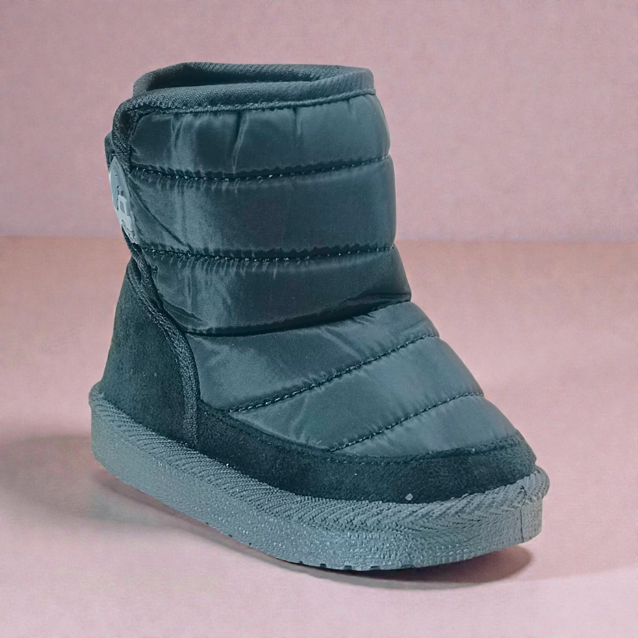 Descripción: ¡Comodidad y estilo en cada paso! Estas botitas de niño en color gris son el compañero perfecto para los días fríos. Su diseño acolchonado ofrece una sensación cálida y suave, mientras que la textura ligera y flexible permite que los pequeños se muevan con total libertad. La suela resistente brinda estabilidad en cada aventura, ideal para caminar en casa o jugar sin preocupaciones.