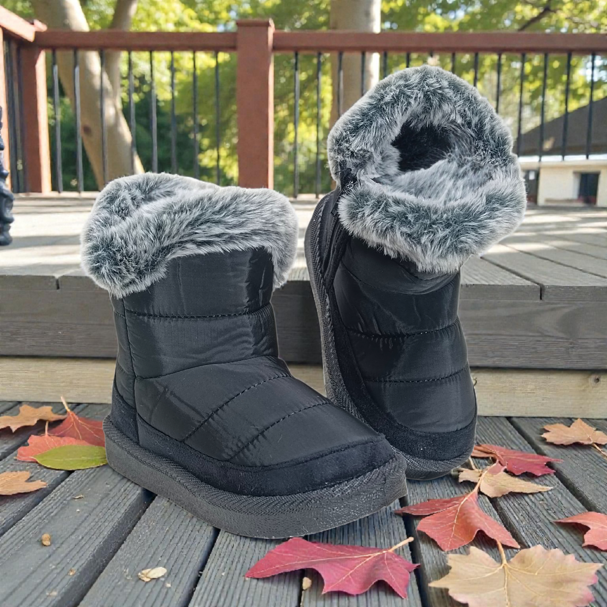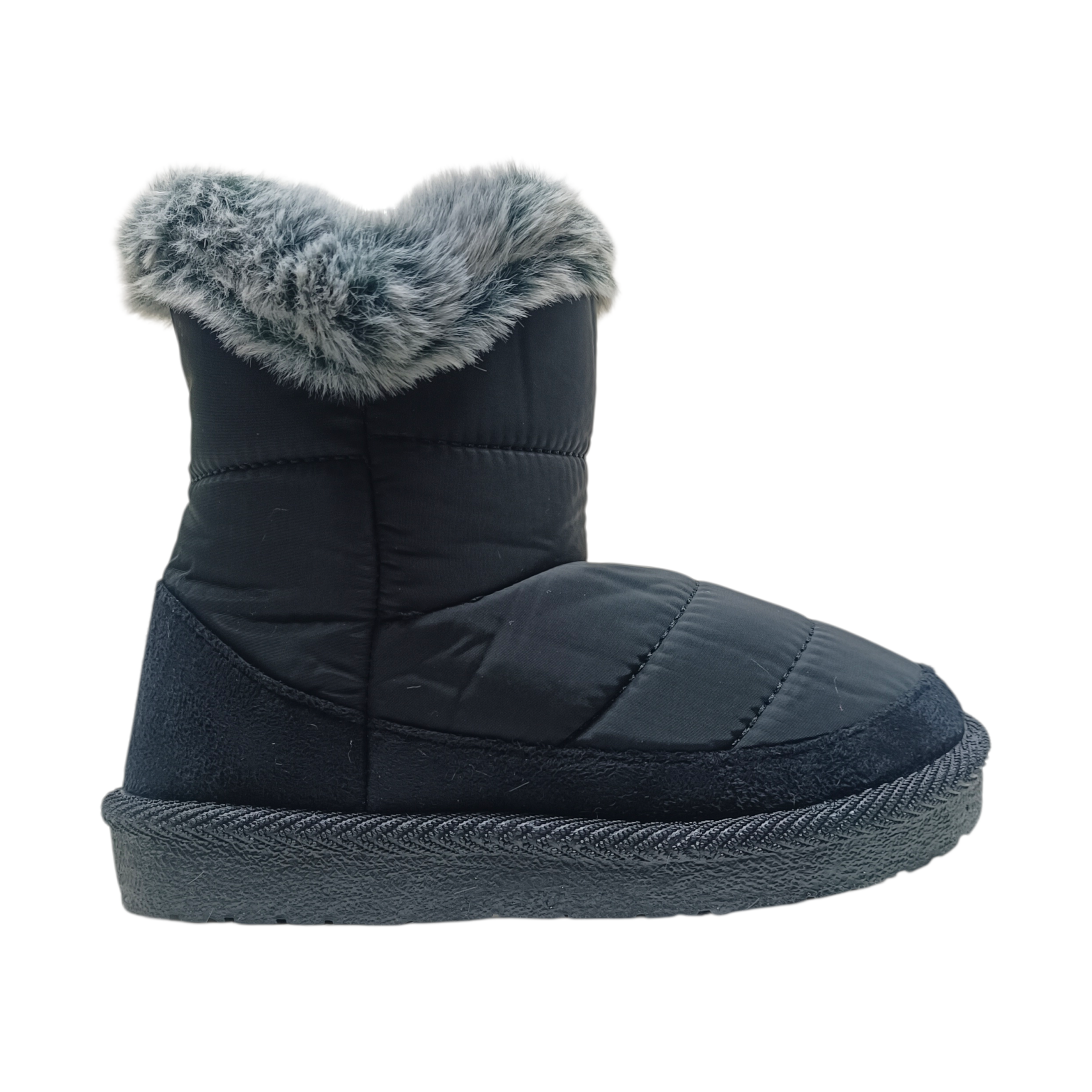 Descripción: ¡Dale a los peques el abrazo más calentito para sus pies! Estas adorables botitas infantiles en tono negro combinan suavidad, estilo y comodidad en cada paso. Su exterior acolchonado mantiene el calor, mientras que el borde de peluche esponjoso añade un toque tierno y acogedor que hace que se vean simplemente encantadoras. La suela ligera y resistente ofrece estabilidad en interiores, perfecta para jugar, correr o descansar sin perder confort.