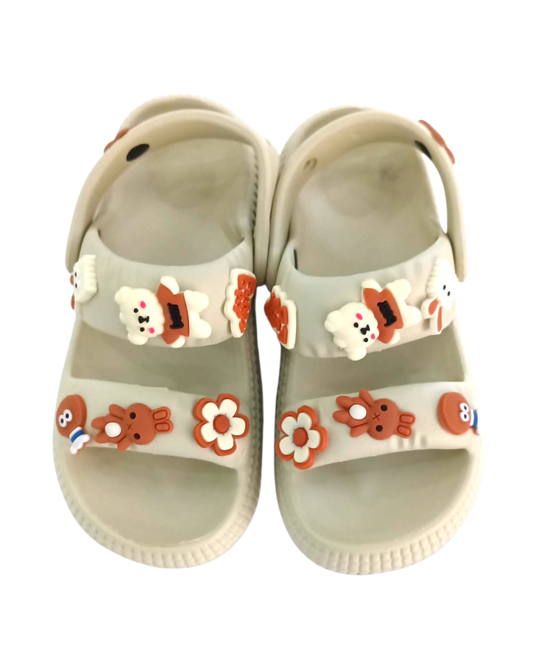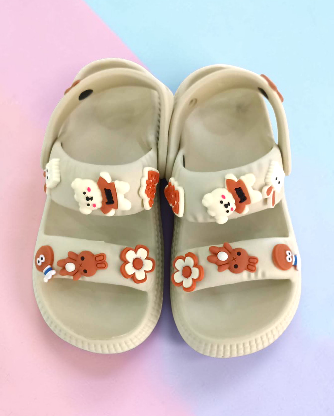 Descripción: Estas sandalias infantiles con pines coloridos están diseñadas en un práctico estilo tipo zueco, combinando comodidad, ligereza y mucha personalidad. Su base en color blanco resalta perfectamente los adorables pines decorativos con figuras divertidas y colores vibrantes, que les dan un toque único y súper llamativo.