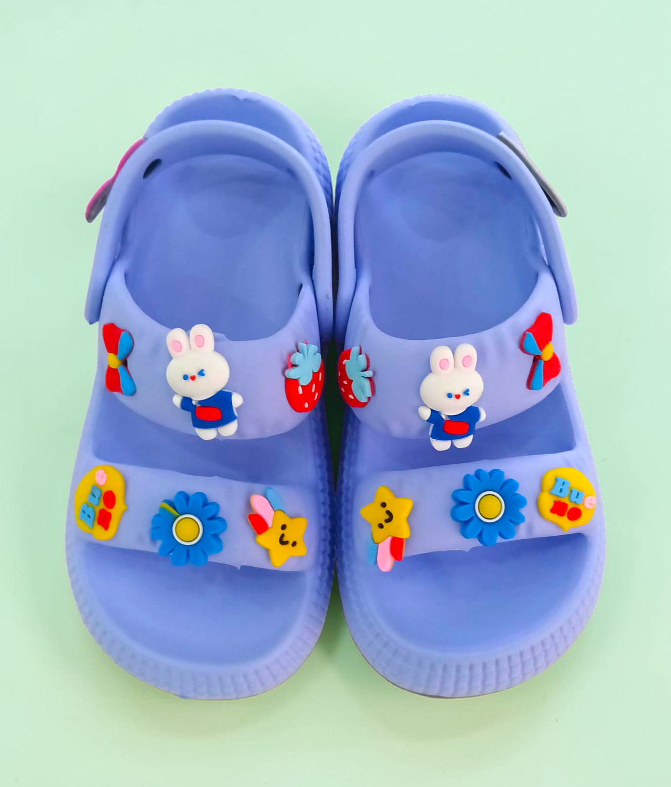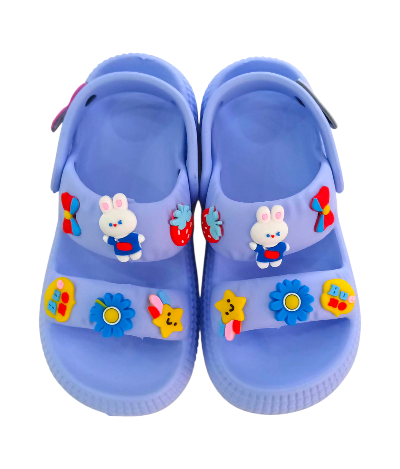 Descripción: Estas sandalias infantiles con pines coloridos están diseñadas en un práctico estilo tipo zueco, combinando comodidad, ligereza y mucha personalidad. Su base en color blanco resalta perfectamente los adorables pines decorativos con figuras divertidas y colores vibrantes, que les dan un toque único y súper llamativo.