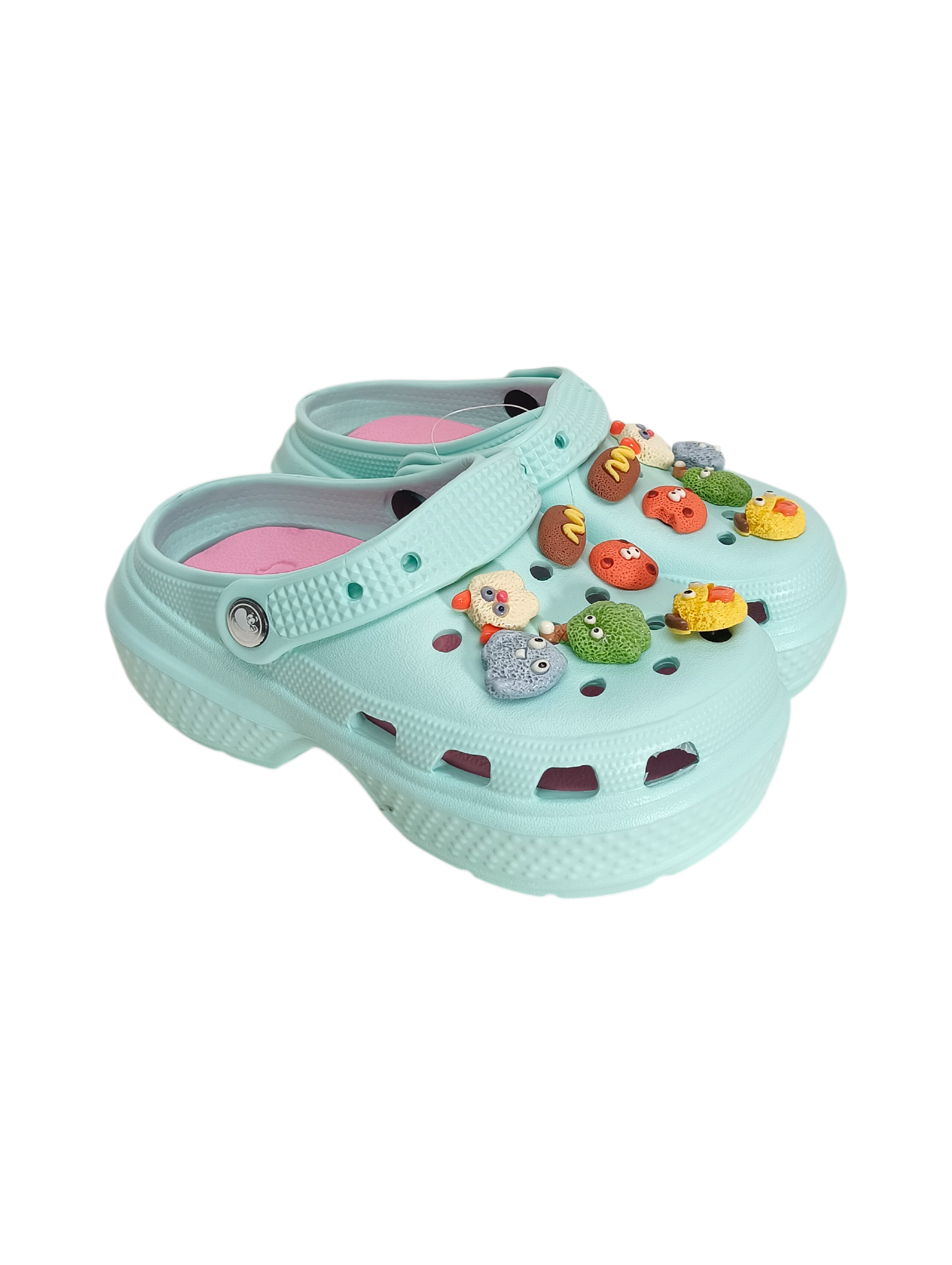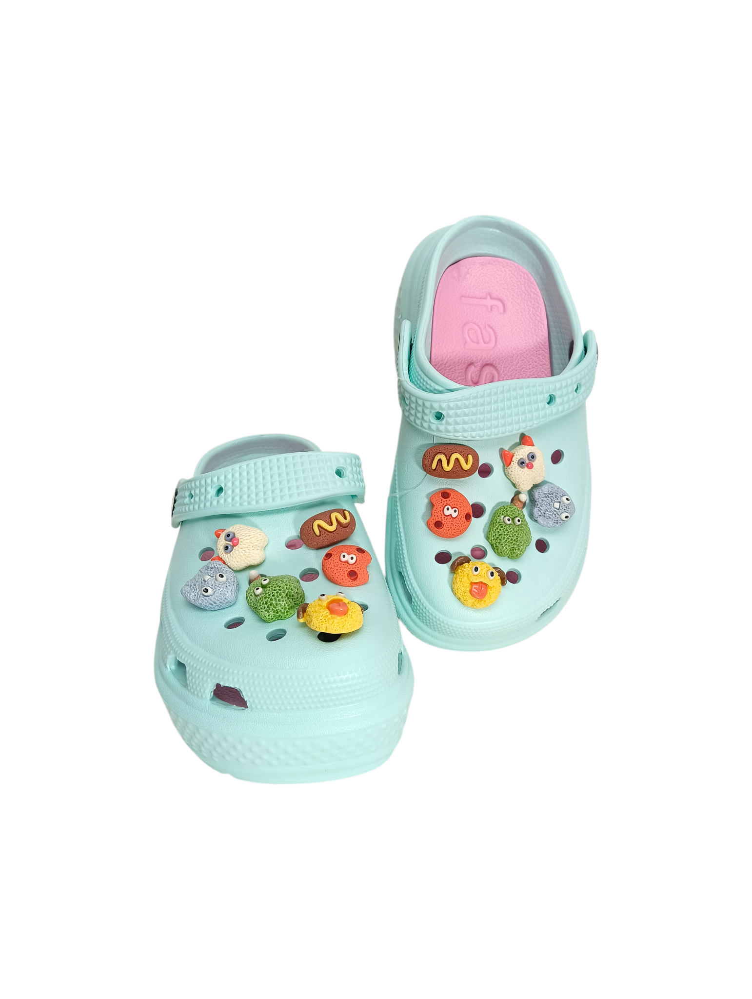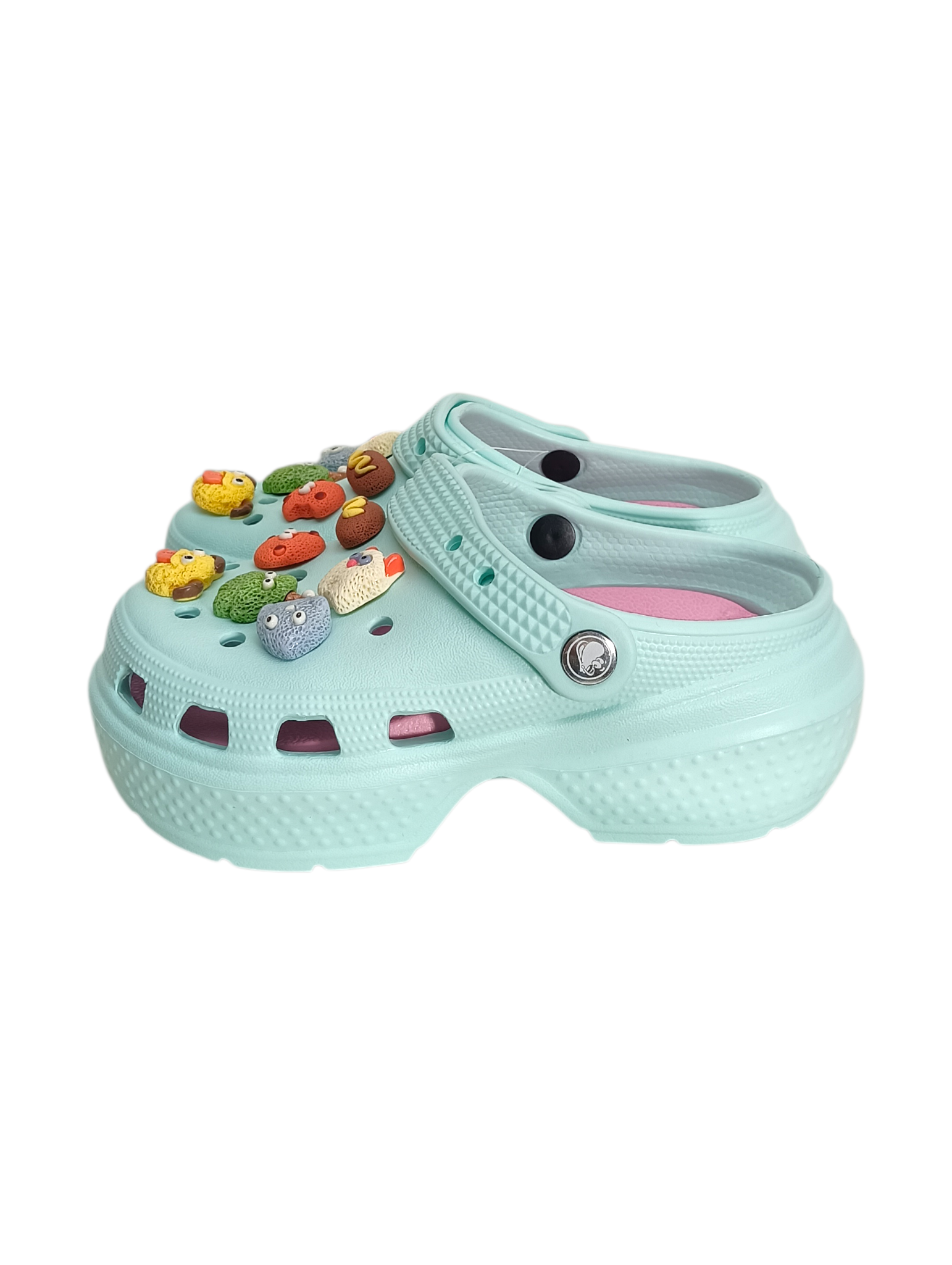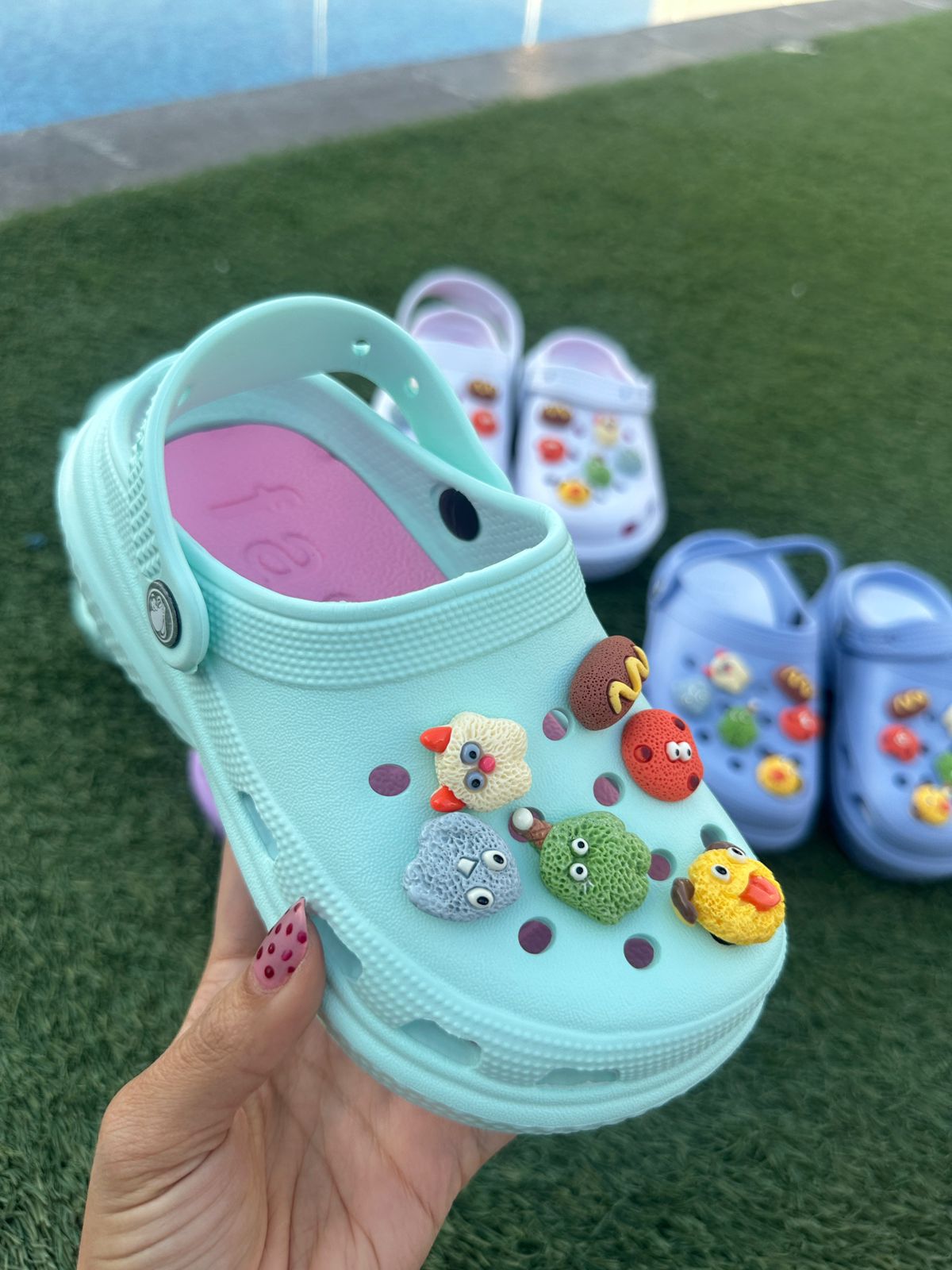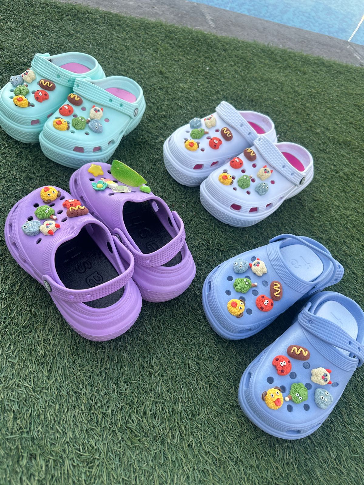 Descripción: Estas sandalias infantiles con pines coloridos están diseñadas en un práctico estilo tipo zueco, combinando comodidad, ligereza y mucha personalidad. Su base en color blanco resalta perfectamente los adorables pines decorativos con figuras divertidas y colores vibrantes, que les dan un toque único y súper llamativo.
