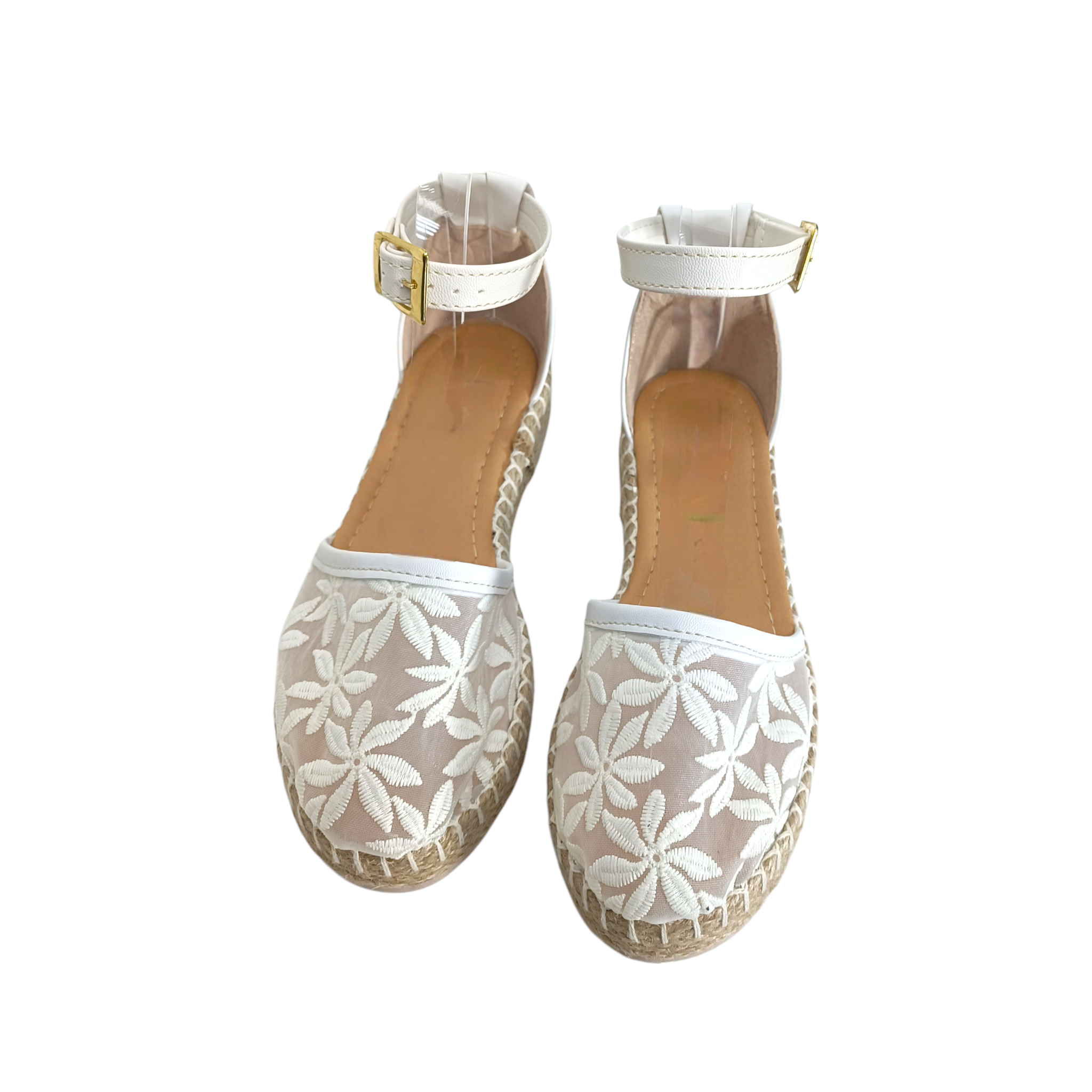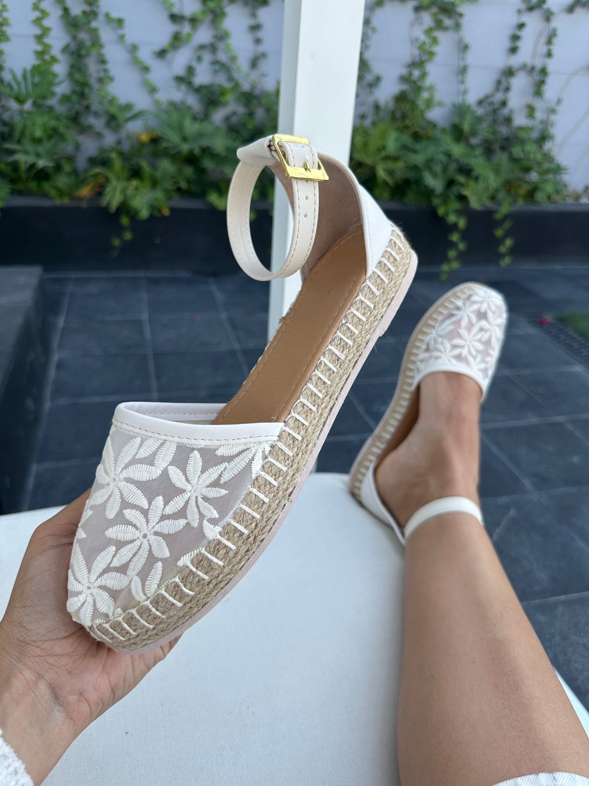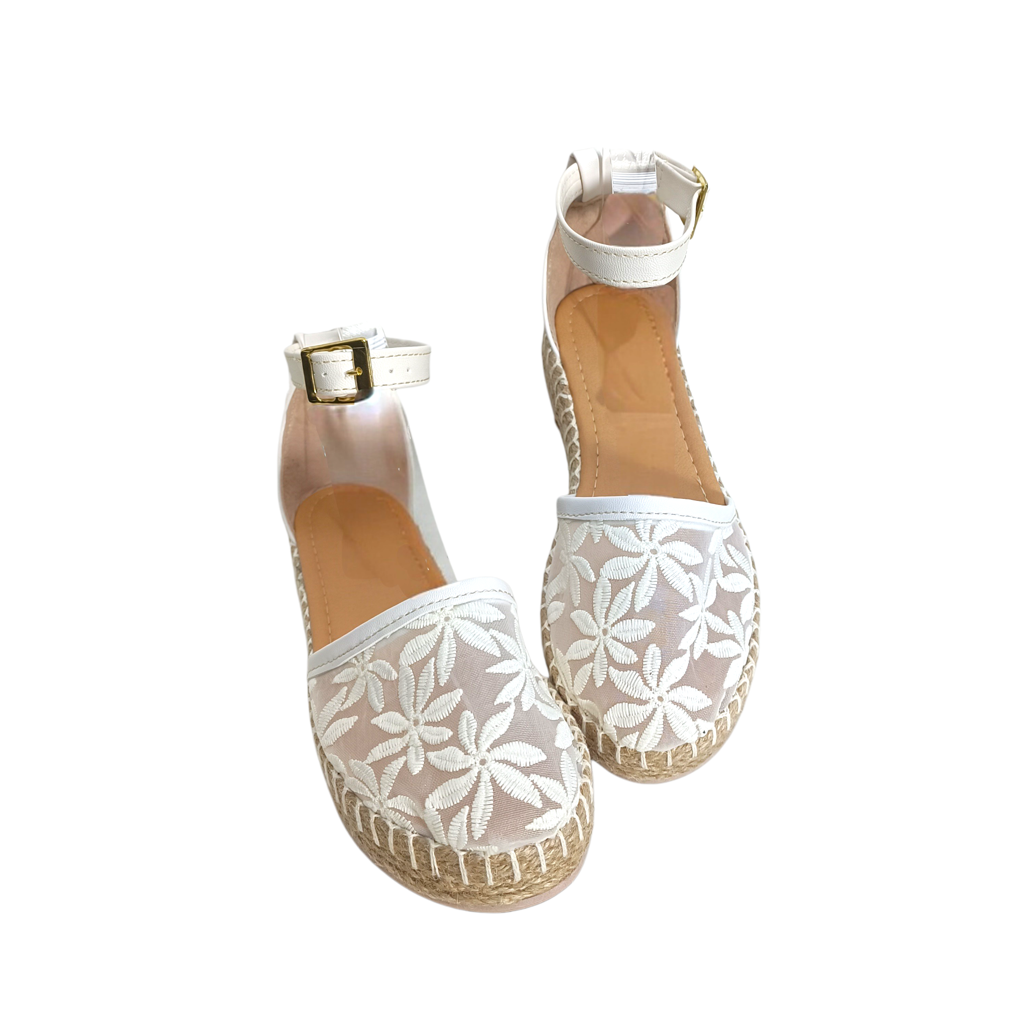 Descripción: Las Alpargatas de Encaje Blanco con Flores son el calzado perfecto para esta temporada, combinando estilo, frescura y comodidad. Con su diseño de yute natural y detalles florales, estas alpargatas ofrecen una opción ligera y elegante para completar tus outfits veraniegos. Su estructura moderna y el diseño floral aportan un toque sofisticado y femenino, ideal para lucir en días soleados, paseos al aire libre o eventos informales.