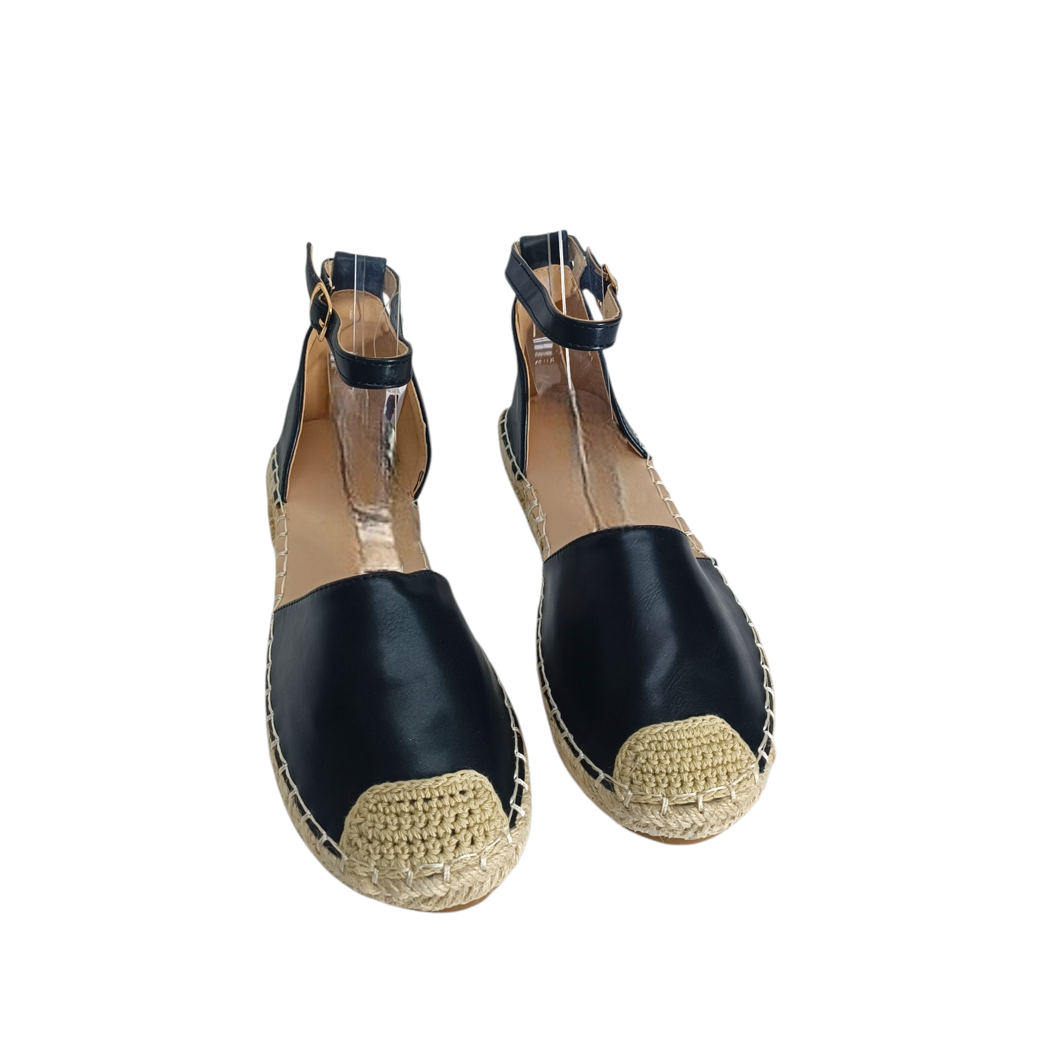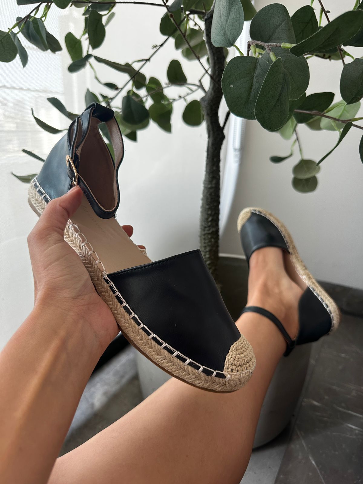 Están confeccionadas con acabado tipo piel suave al tacto, brindando una apariencia elegante y versátil que se adapta tanto a outfits casuales como a conjuntos más arreglados. La puntera con detalle tejido en yute aporta ese toque artesanal y natural que marca tendencia, evocando el espíritu relajado del verano.