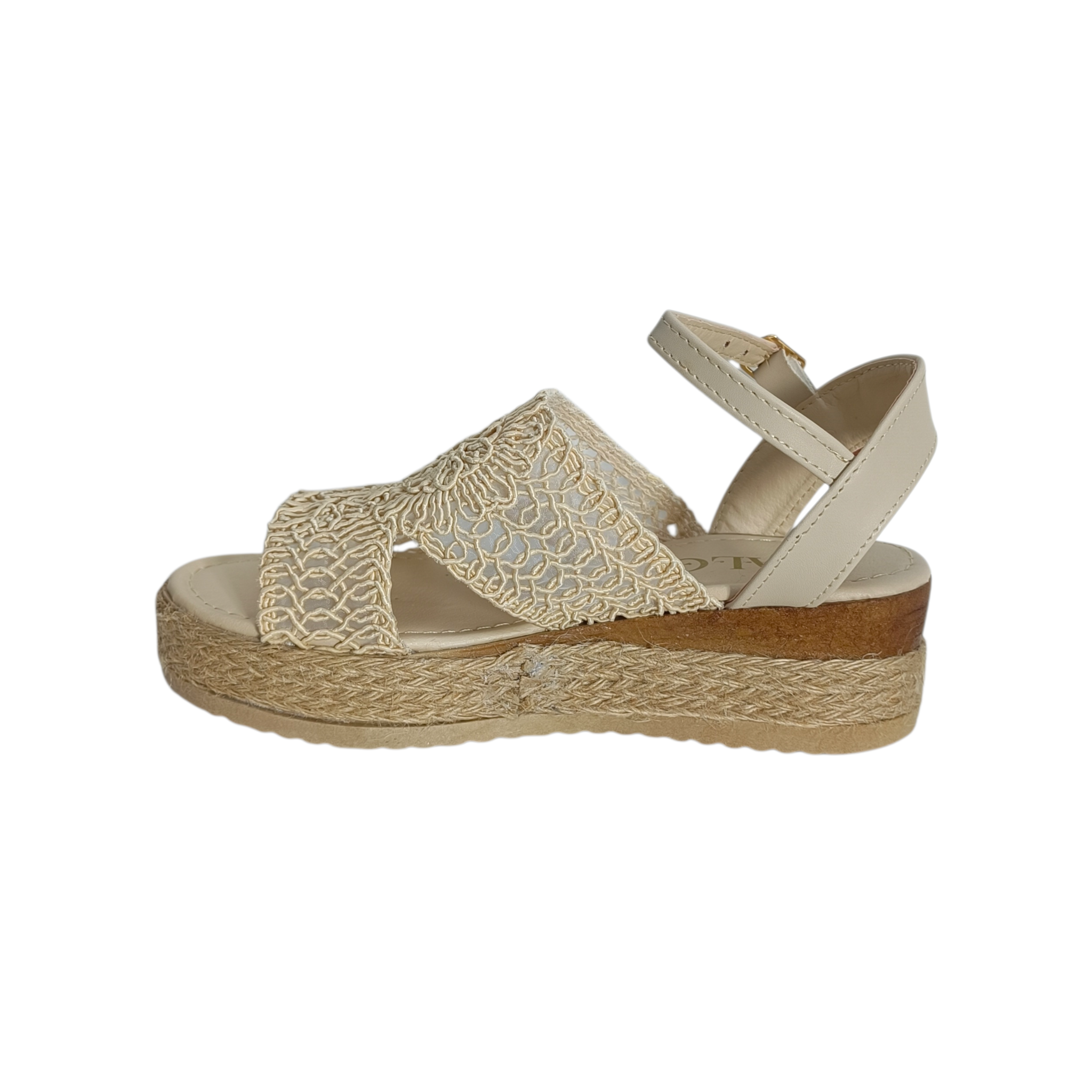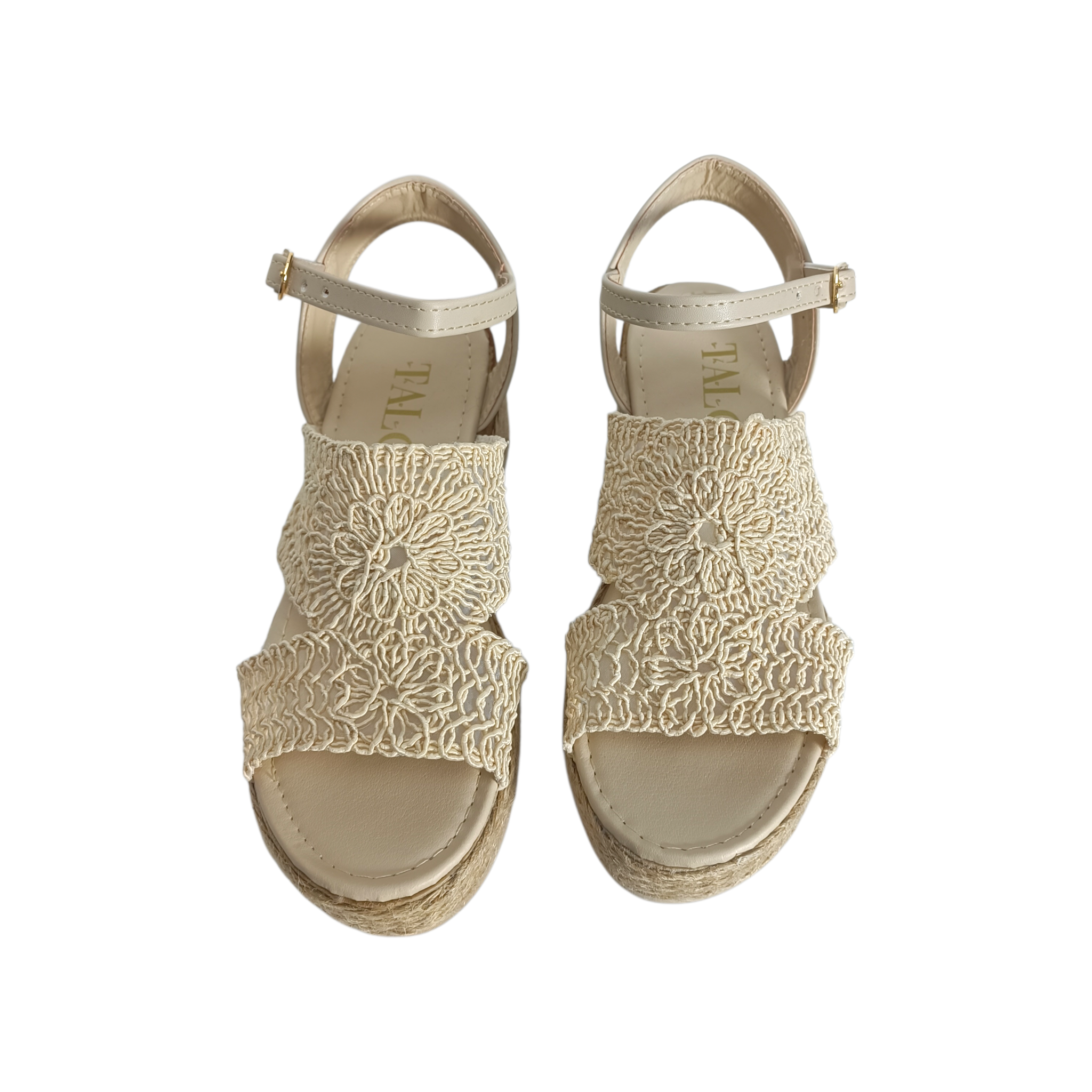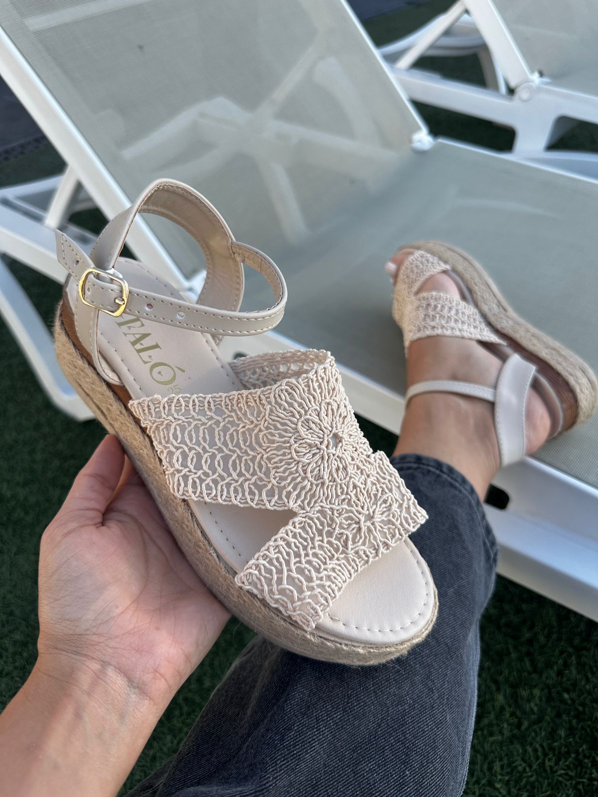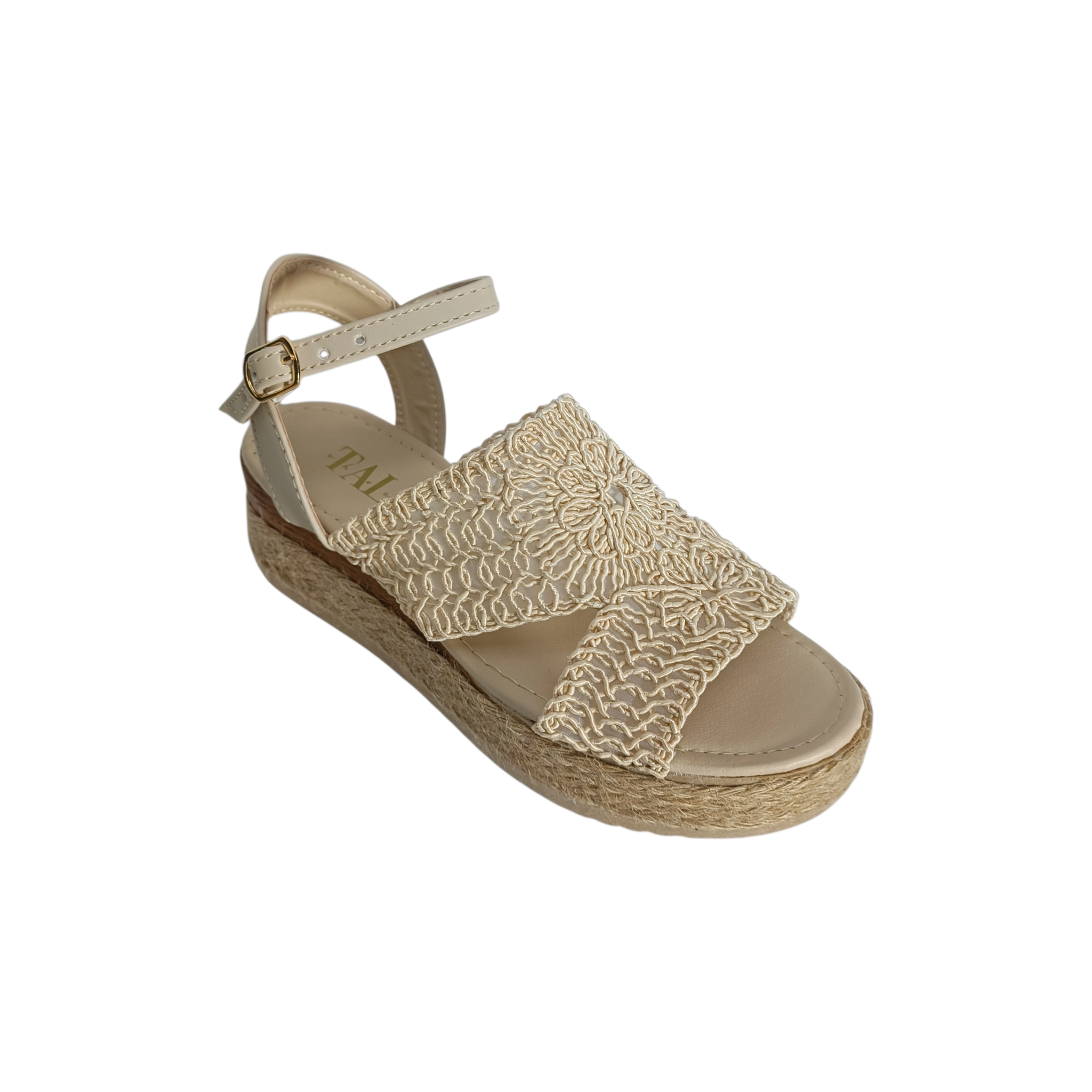Las tiras cruzadas de crochet sobre el empeine ofrecen un ajuste seguro y transpirable, mientras que la plataforma de yute no solo proporciona altura, sino también una sensación de frescura y ligereza en cada paso. La correa ajustable en el tobillo permite personalizar el ajuste, asegurando que las alpargatas se mantengan cómodamente en su lugar durante todo el día.