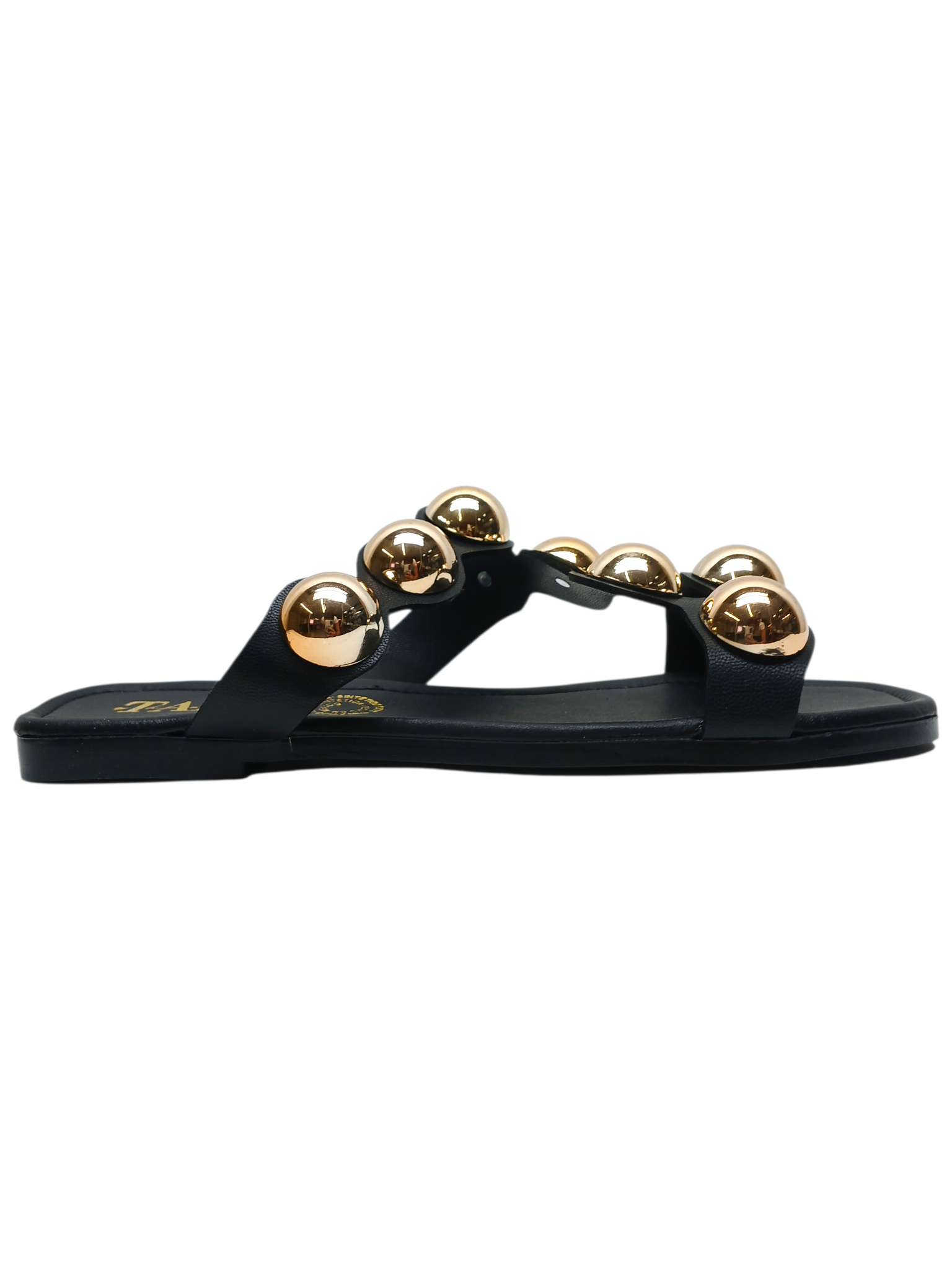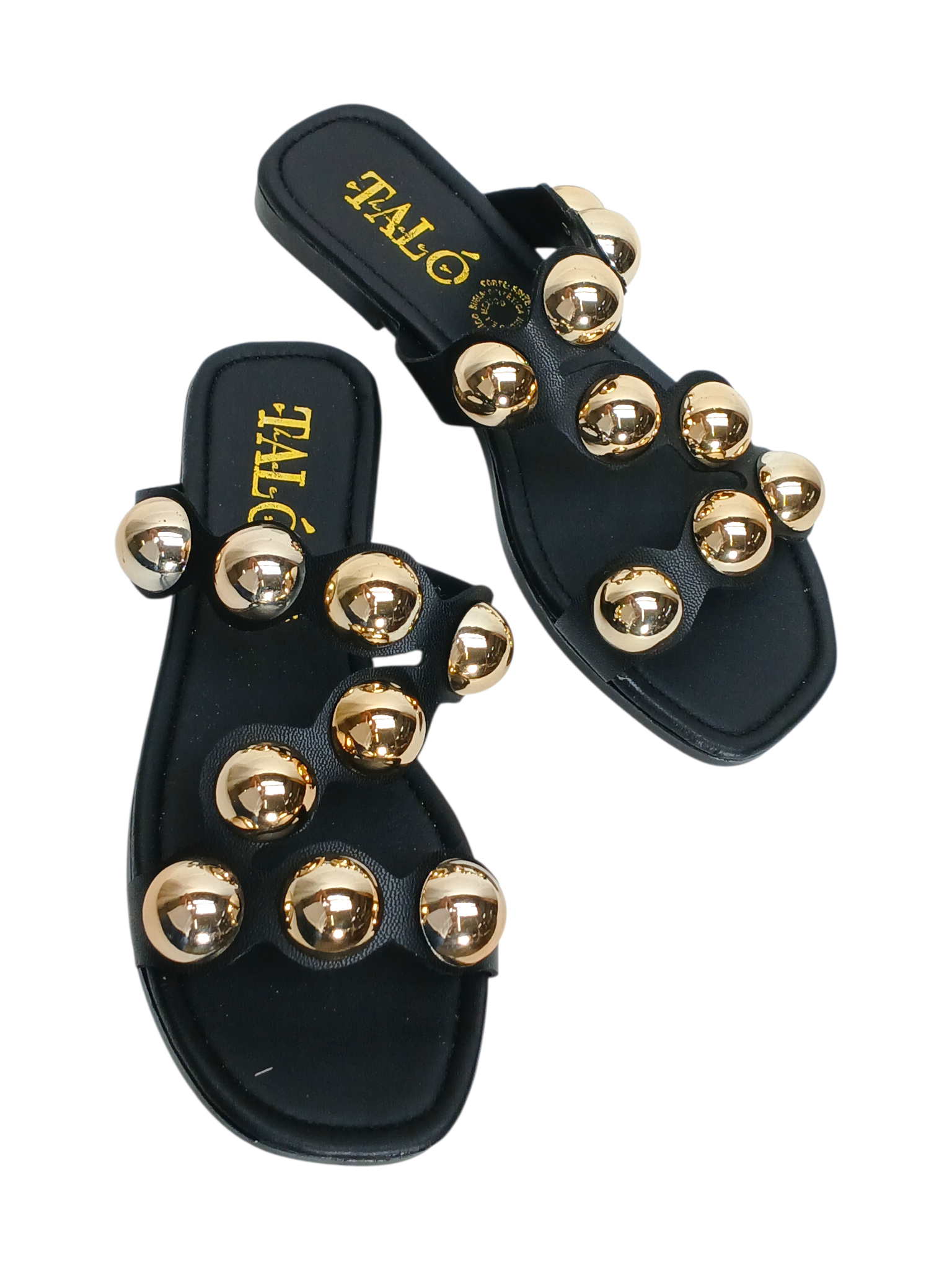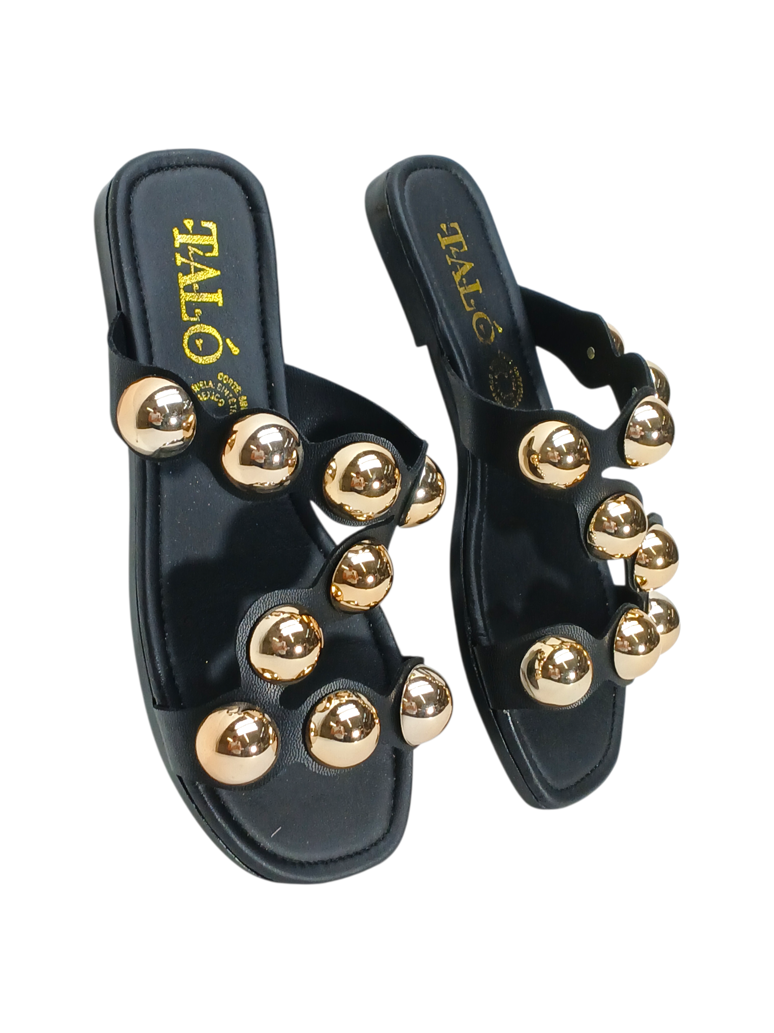 Descripción: Dale a tus outfits un toque de estilo y personalidad con estas increíbles sandalias que están marcando tendencia. Su diseño en color negro combina a la perfección con las llamativas esferas metálicas en tono dorado, creando un contraste moderno, elegante y muy fashion que no pasa desapercibido.
