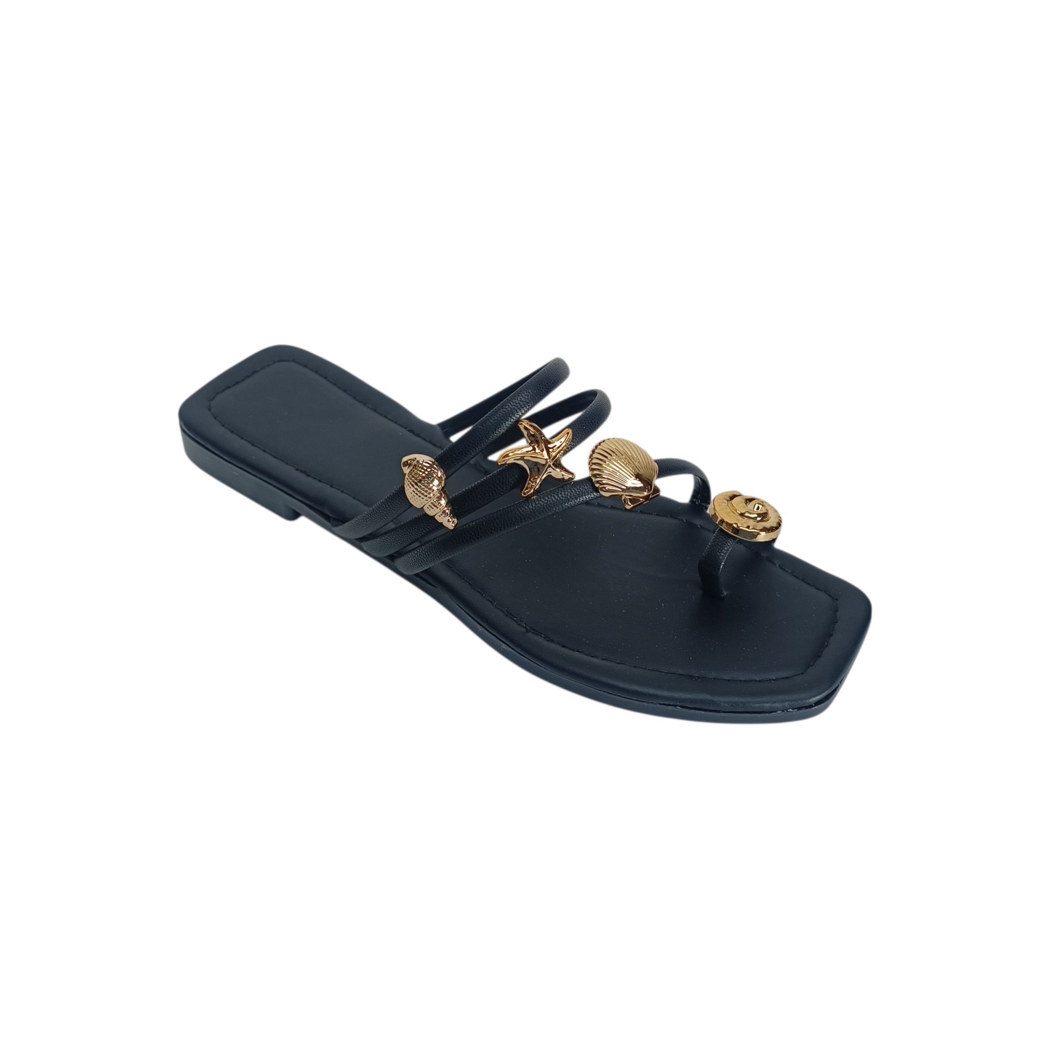 Sandalia Negra con Tiras y Apliques Dorados Mod. 35 0400