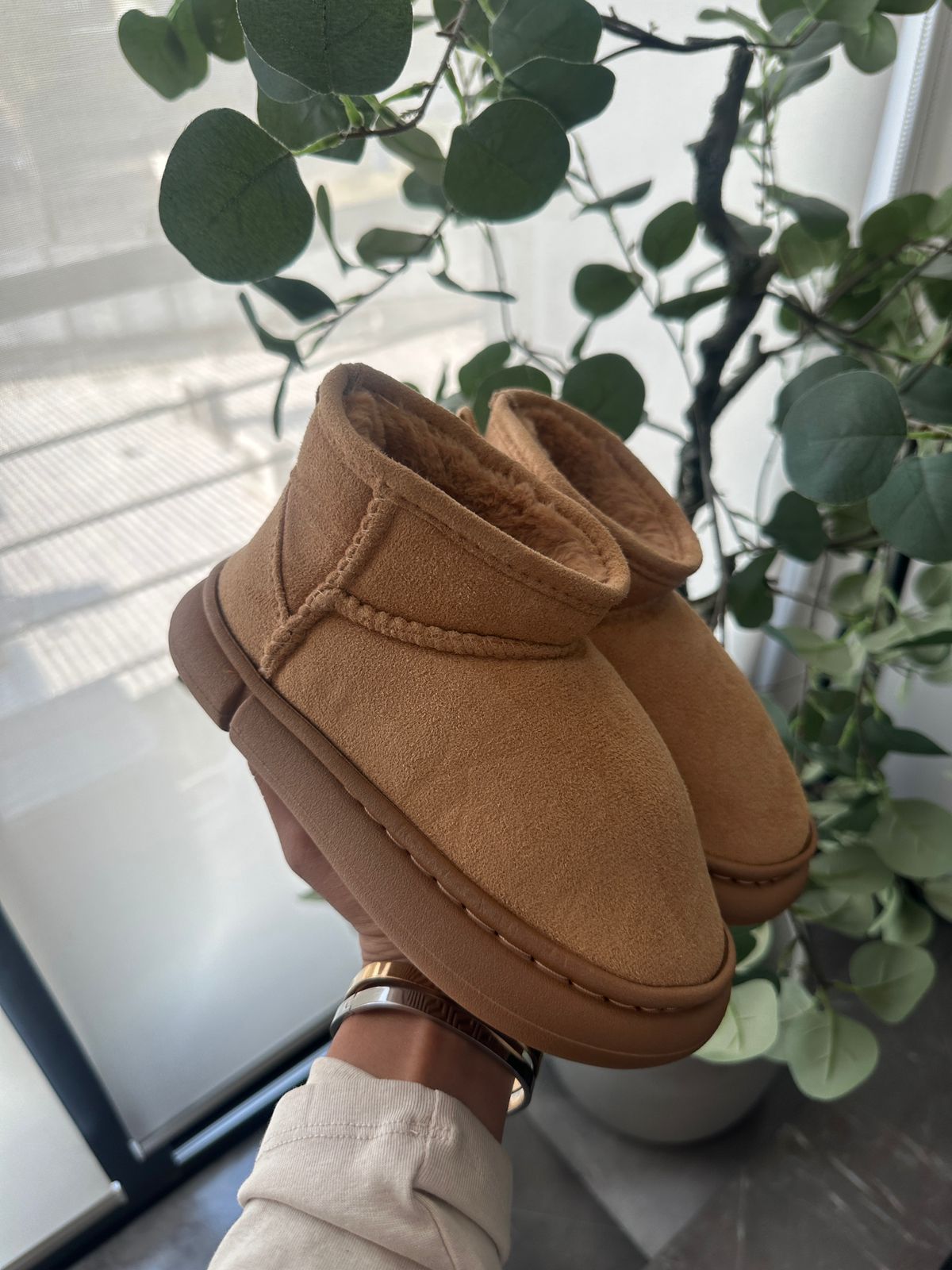 Estas botitas tipo Ugg en color camel están diseñadas para ofrecer calidez, suavidad y comodidad en cada paso. Su exterior afelpado aporta un estilo acogedor y versátil que combina perfecto con outfits casuales de temporada. El interior suave brinda una sensación cálida ideal para los días fríos, mientras que la suela ligera y flexible permite caminar con confort durante todo el día.