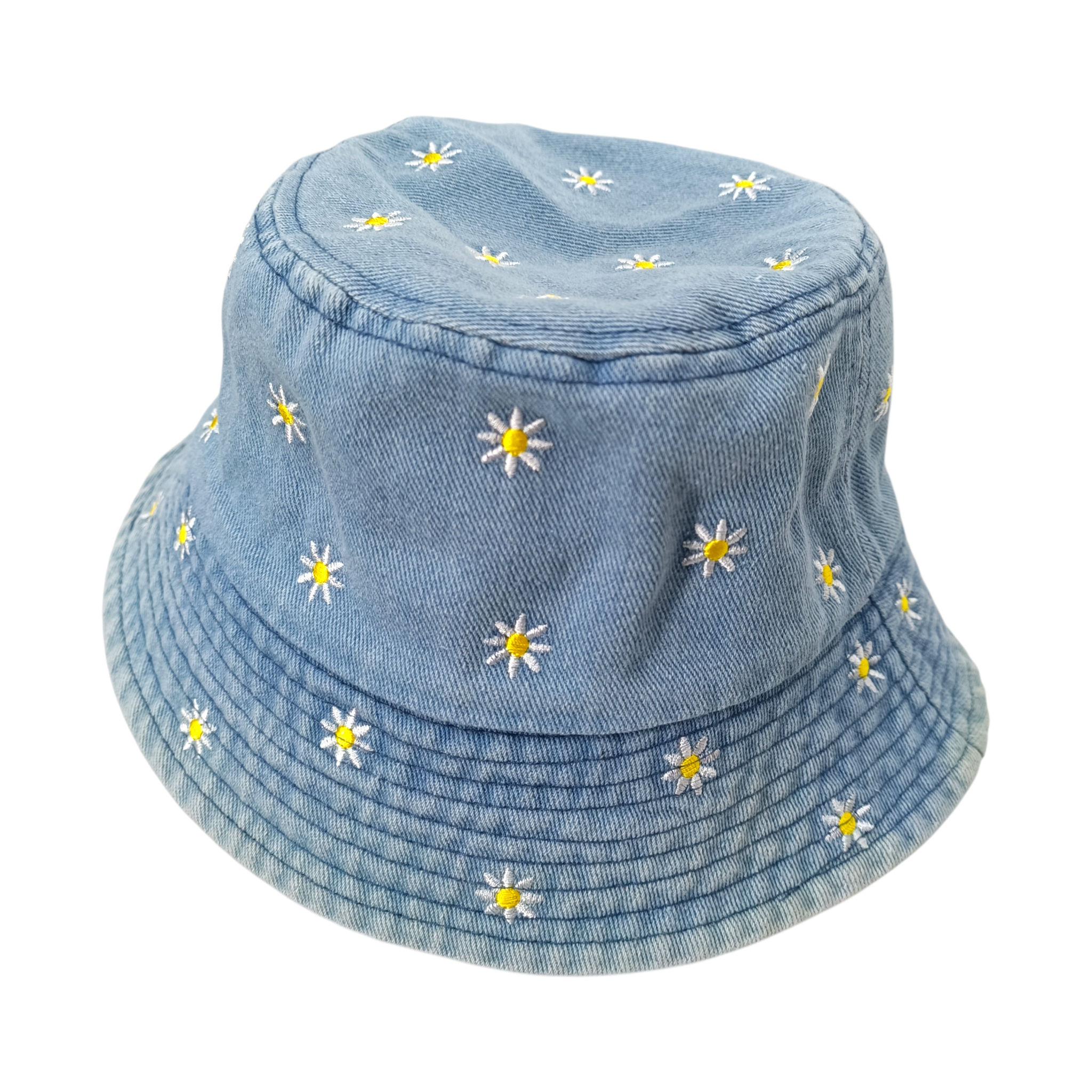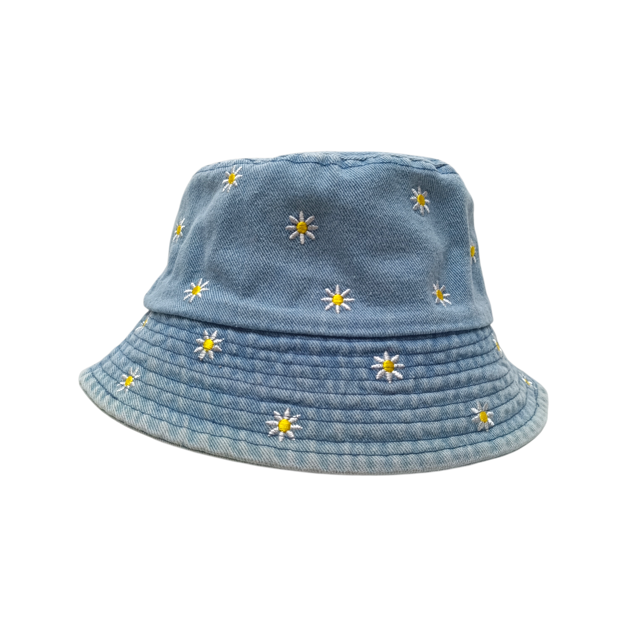 Sombrero Bucket de Mezclilla Azul claro con Flores Mod. 10 0533