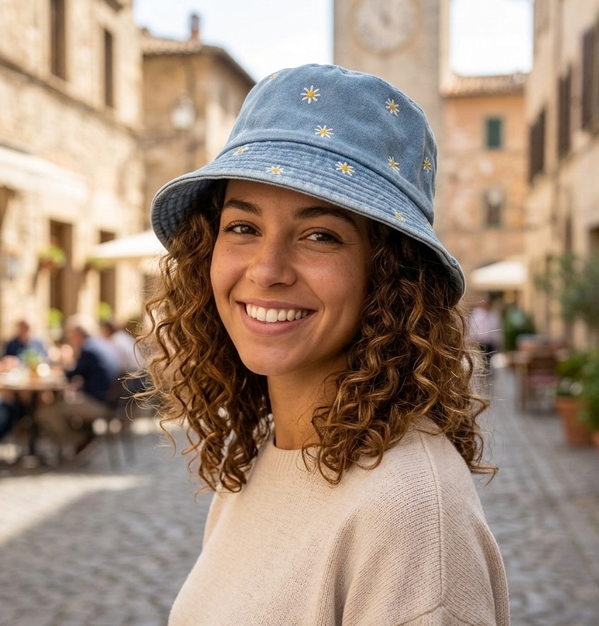Este sombrero es perfecto para quienes aman los accesorios con personalidad. Las flores bordadas le dan un aire alegre y femenino, mientras que la mezclilla aporta ese toque casual que combina fácilmente con cualquier outfit.