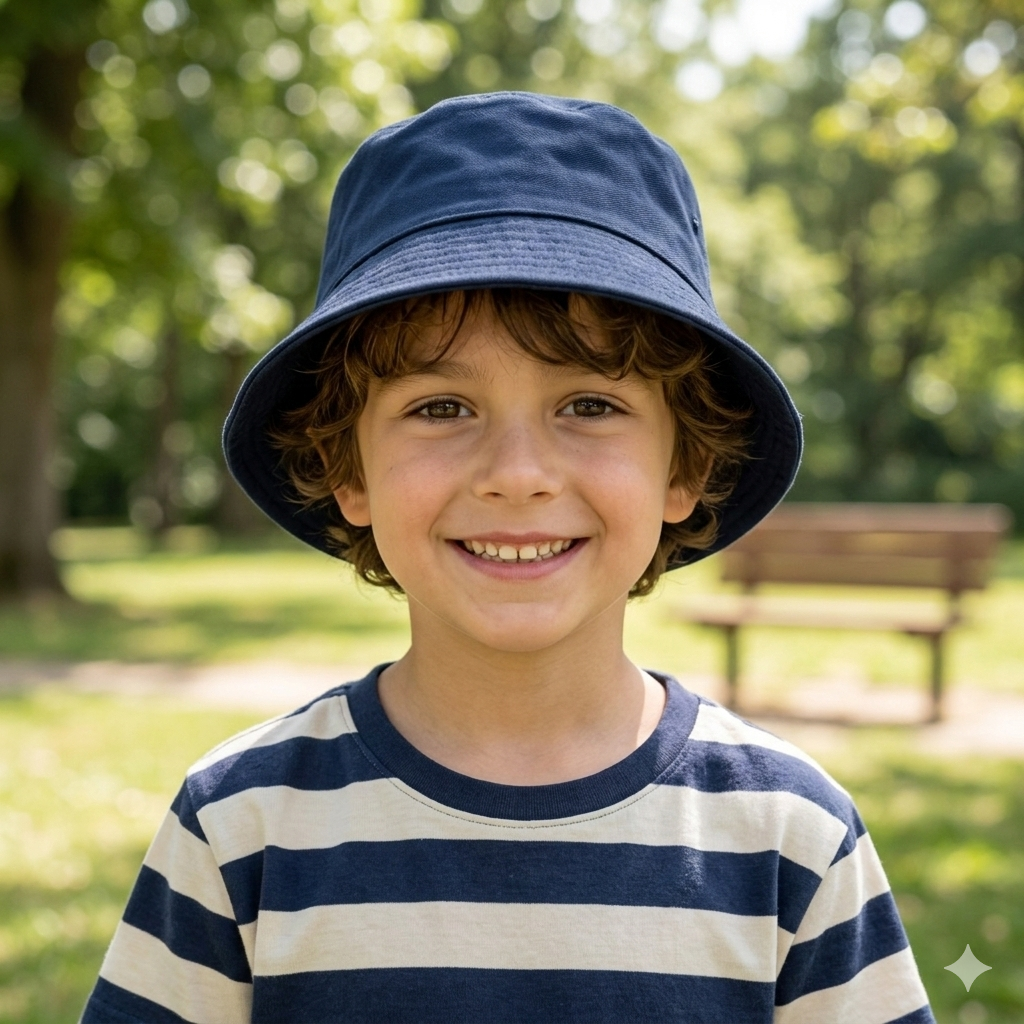 Descripción: Sombrero infantil estilo bucket en un encantador tono azul que aporta un toque dulce, moderno y lleno de personalidad a cualquier outfit. Su diseño liso y minimalista lo convierte en un accesorio versátil que combina fácilmente con diferentes prendas, ideal para crear looks frescos y divertidos.