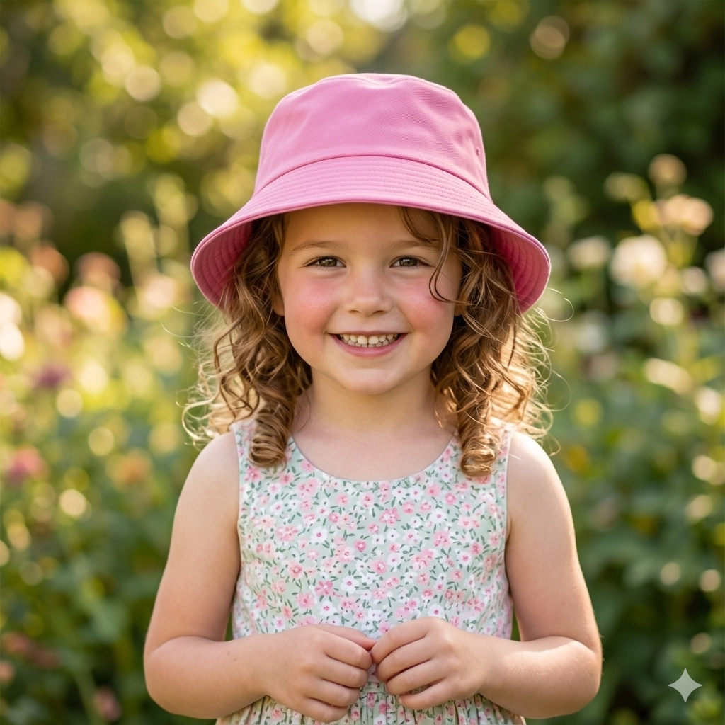 Descripción: Sombrero infantil estilo bucket en un encantador tono rosa que aporta un toque dulce, moderno y lleno de personalidad a cualquier outfit. Su diseño liso y minimalista lo convierte en un accesorio versátil que combina fácilmente con diferentes prendas, ideal para crear looks frescos y divertidos.