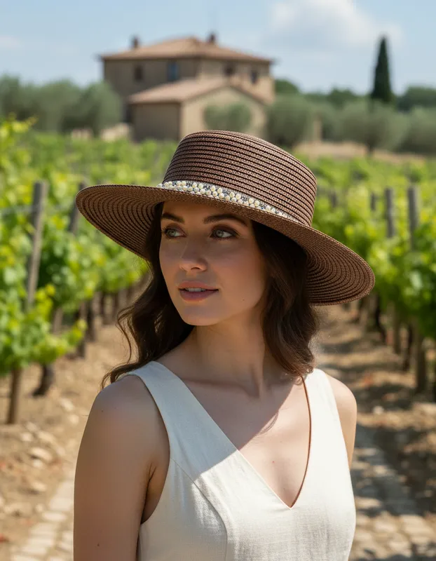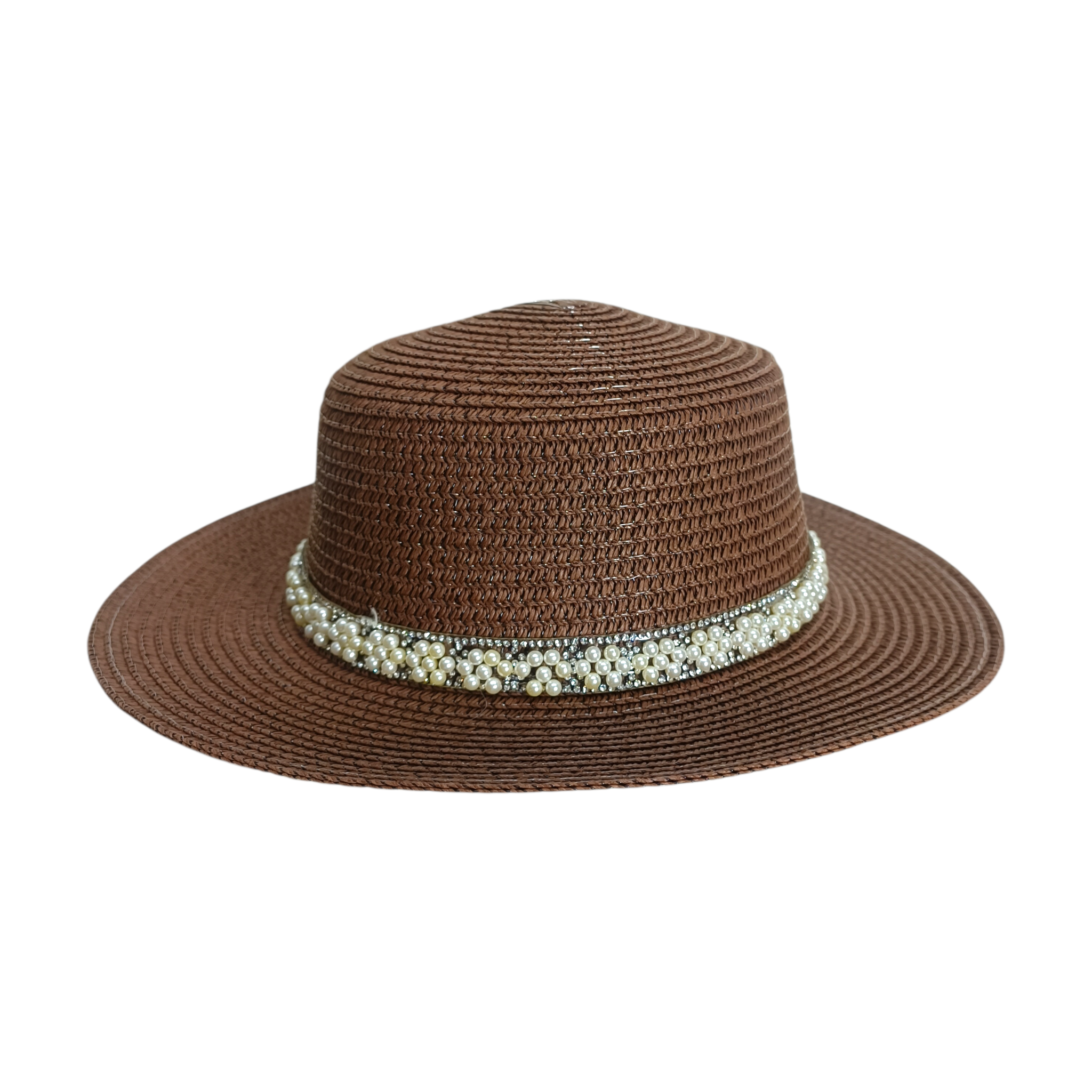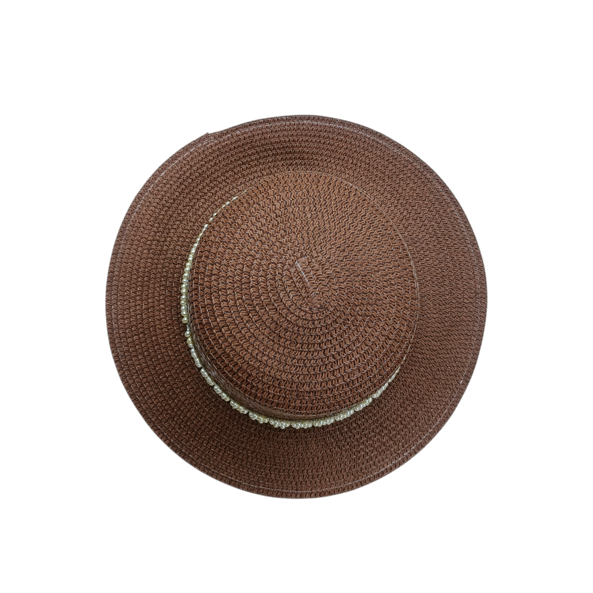 Descripción: Elegante y bello sombrero confeccionado con un material trenzado de alta calidad en un tono Rosa, lo que le proporciona un acabado natural y fresco, perfecto para la temporada de primavera-verano. Su diseño se asemeja al estilo fedora, con una copa estructurada de altura media y un ala ancha que no solo añade un toque chic, sino que también ofrece una excelente protección contra el sol, haciéndolo ideal para días soleados en la playa, el campo o incluso en la ciudad. Lo que realmente hace destacar a este sombrero son sus delicados detalles decorativos: está adornado con perlas y pequeñas cuentas en tonos dorados y plateados, distribuidas estratégicamente sobre la copa y el ala.