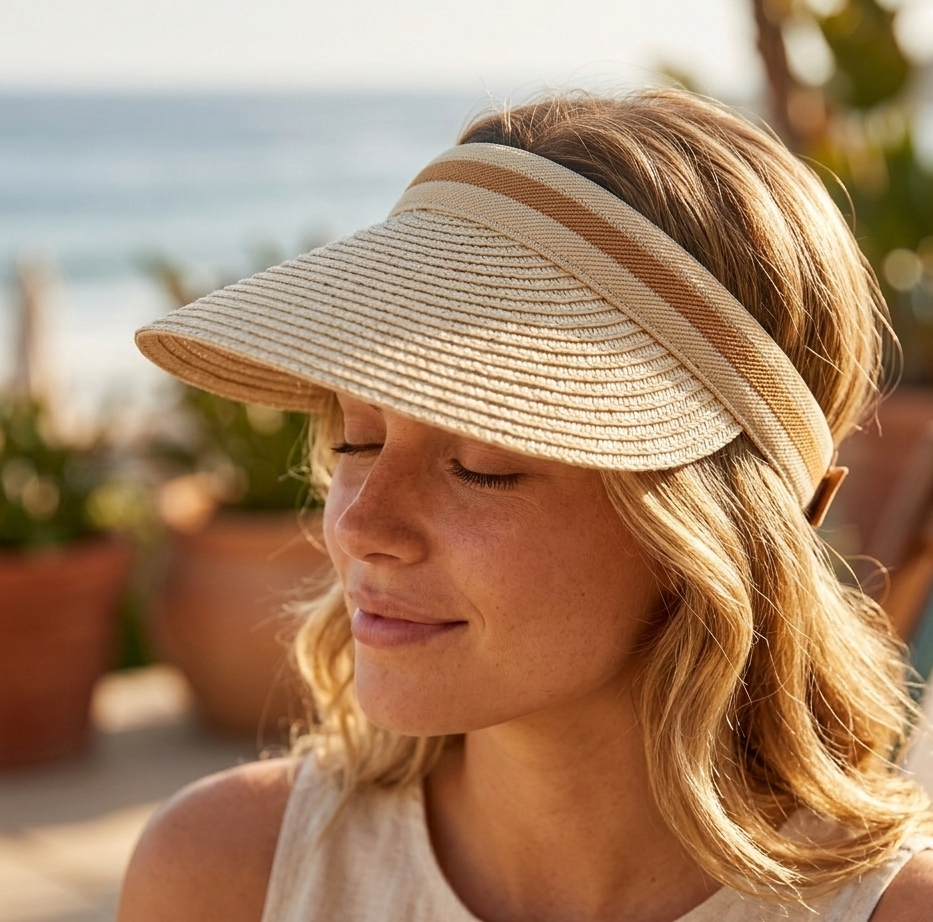 Elaborada con un tejido ligero y transpirable, esta visera es perfecta para proteger tu rostro del sol mientras mantienes un estilo relajado y chic. Su estructura amplia brinda excelente cobertura, ideal para paseos en la playa, salidas casuales, vacaciones o días al aire libre.