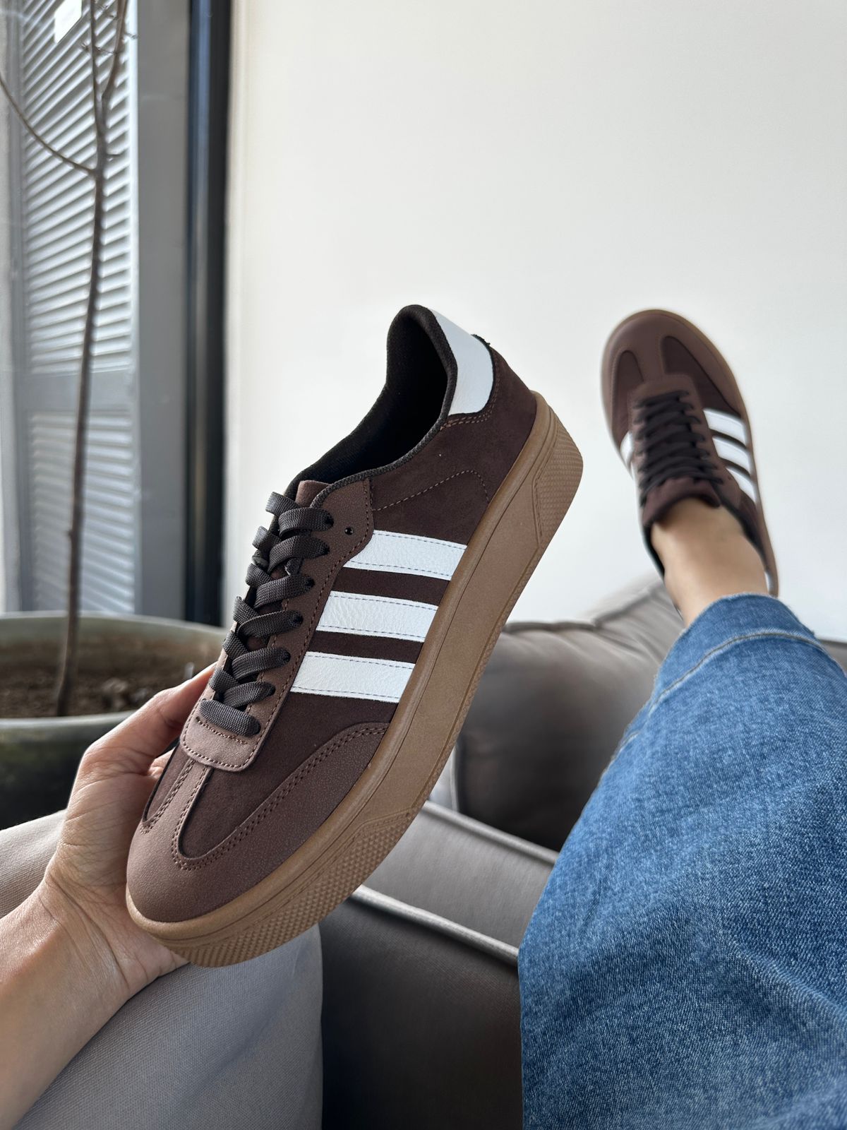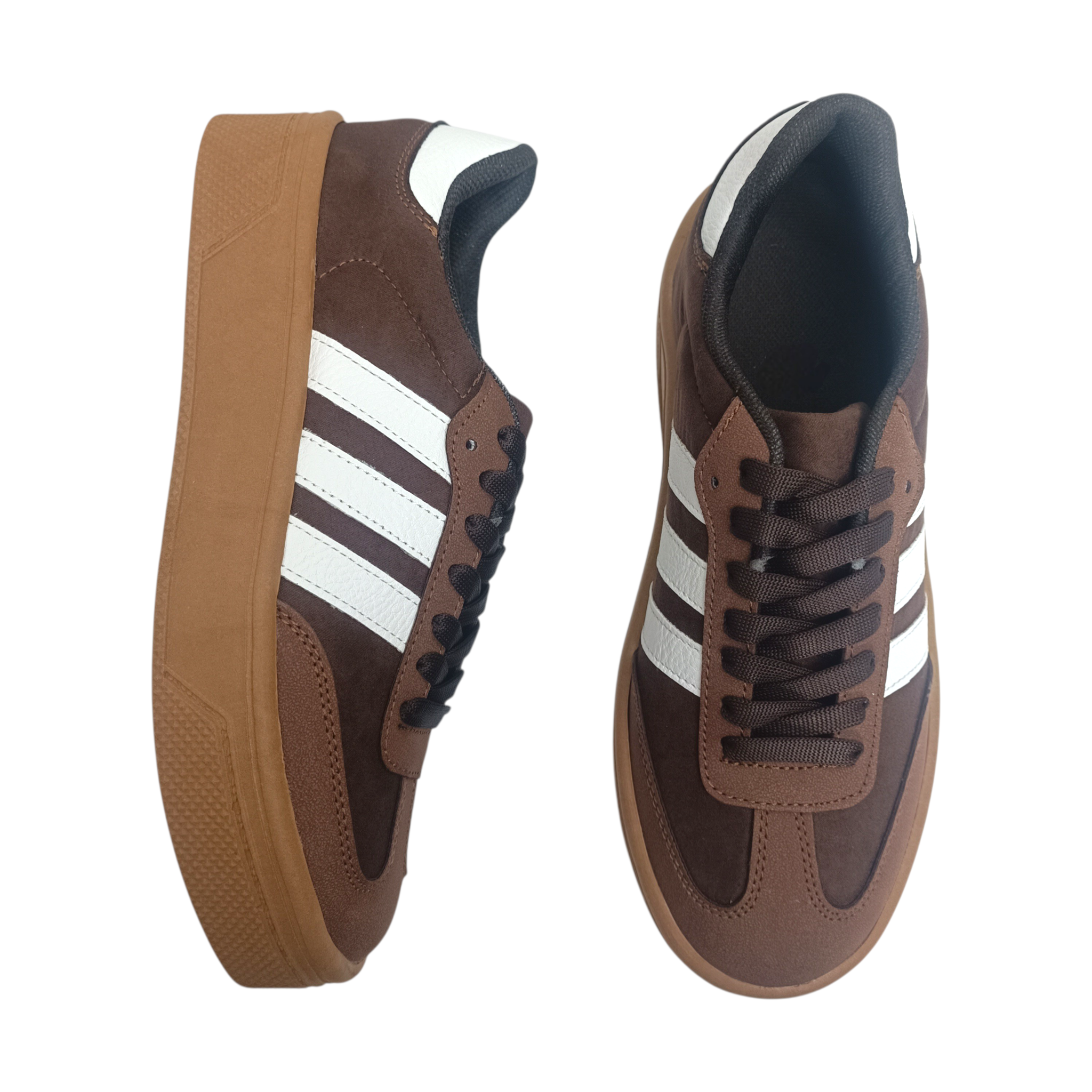 Descripción: Estos Tenis en color Chocolate combinan una mezcla moderna de texturas que elevan cualquier outfit. Su diseño en liso con detalles en blanco aporta carácter, mientras que su construcción ligera y flexible brinda una comodidad excepcional a cada paso.