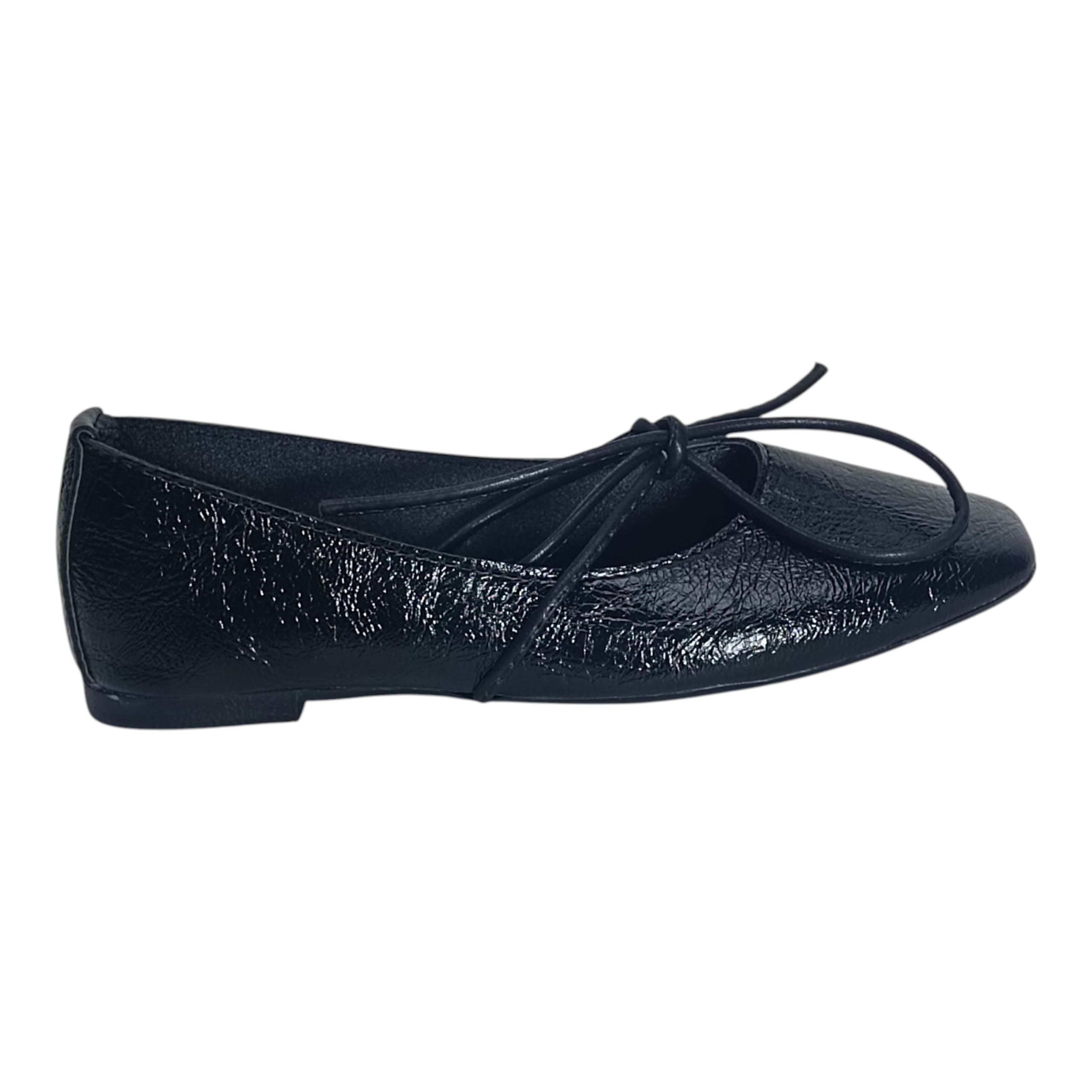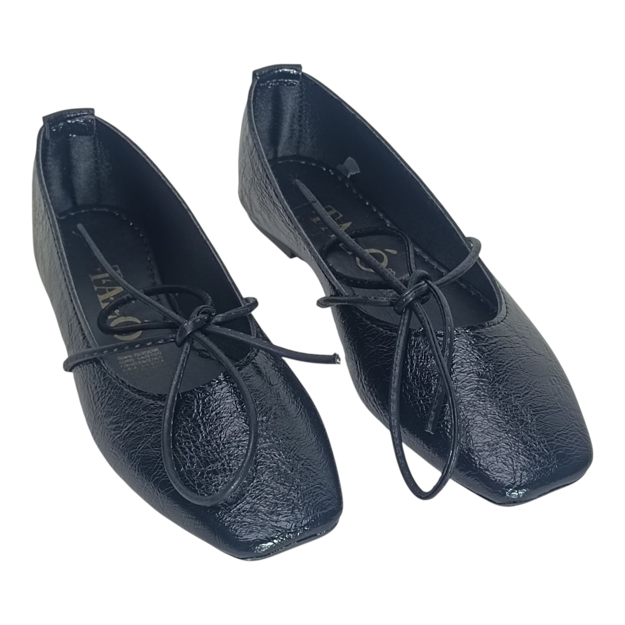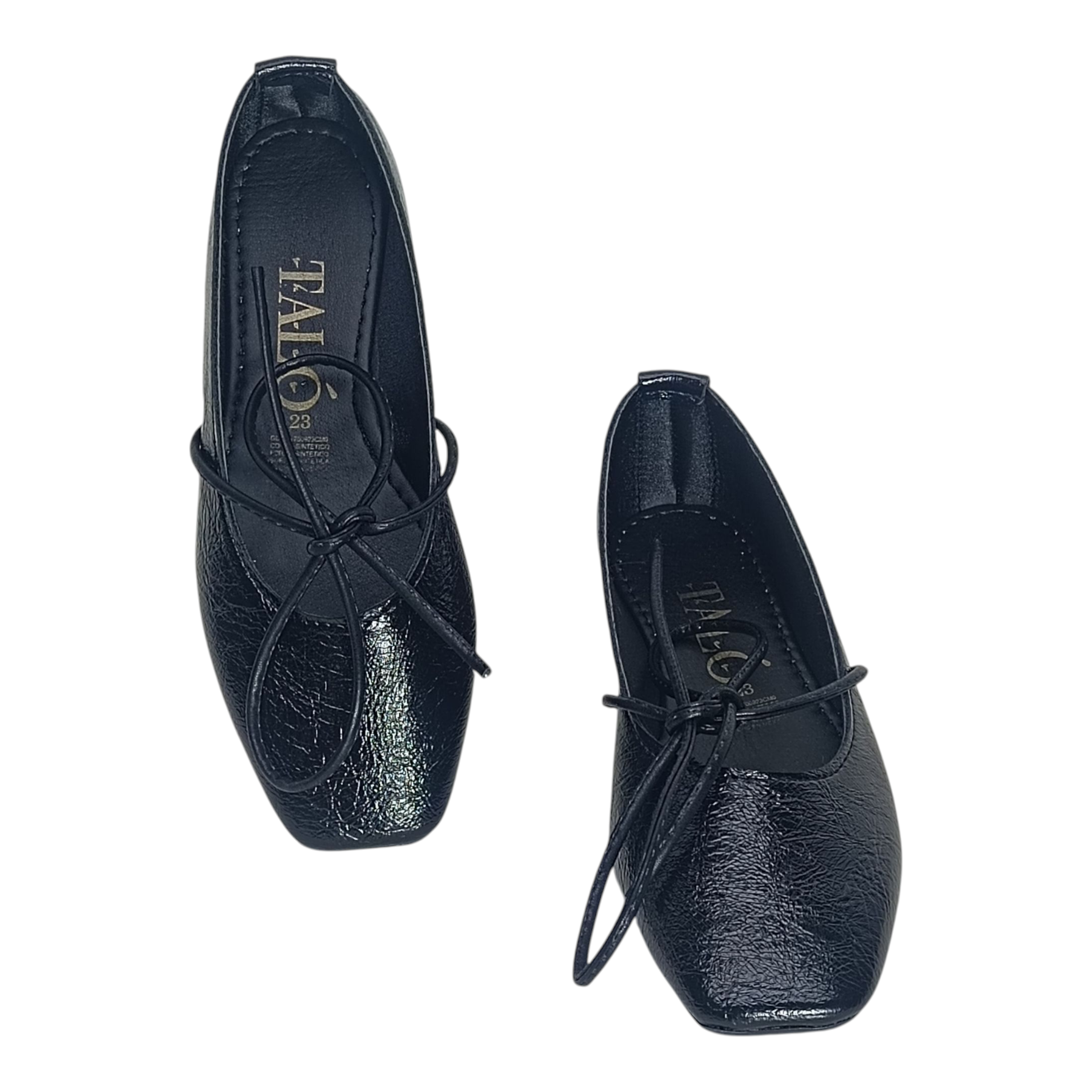 Con diseño de punta cuadrada, acabado tipo charol desgastado y materiales sintéticos de alta calidad, estas ballerinas no solo lucen increíbles, sino que también ofrecen comodidad para todo el día. El listón ancho permite un ajuste más personalizado y seguro.