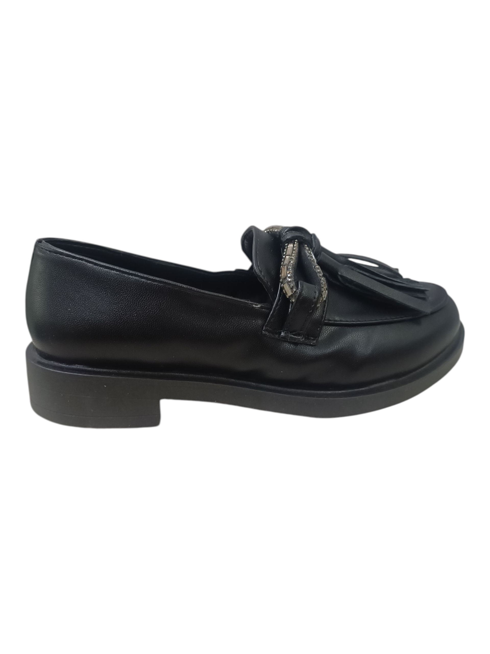 Mocasín Negro Con Moño Y Toques De Cristal Mod. 02 1001