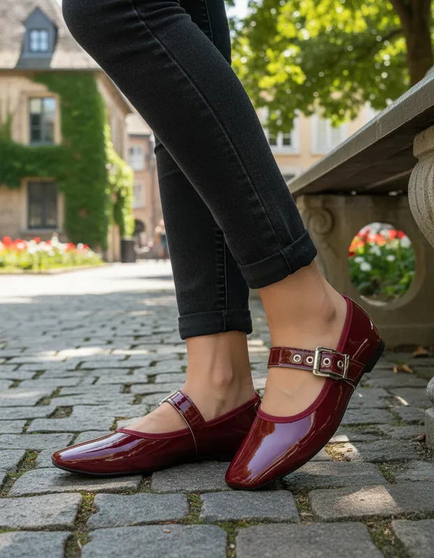 Un diseño que captura miradas desde el primer paso. Estas valerin as de charol corrugado combinan la elegancia clásica del estilo Mary Jane con una textura especial que aporta profundidad y carácter al acabado brillante. Su doble correa con hebillas metálicas no solo realza el diseño, sino que brinda un ajuste seguro y cómodo, ideal para el uso diario.