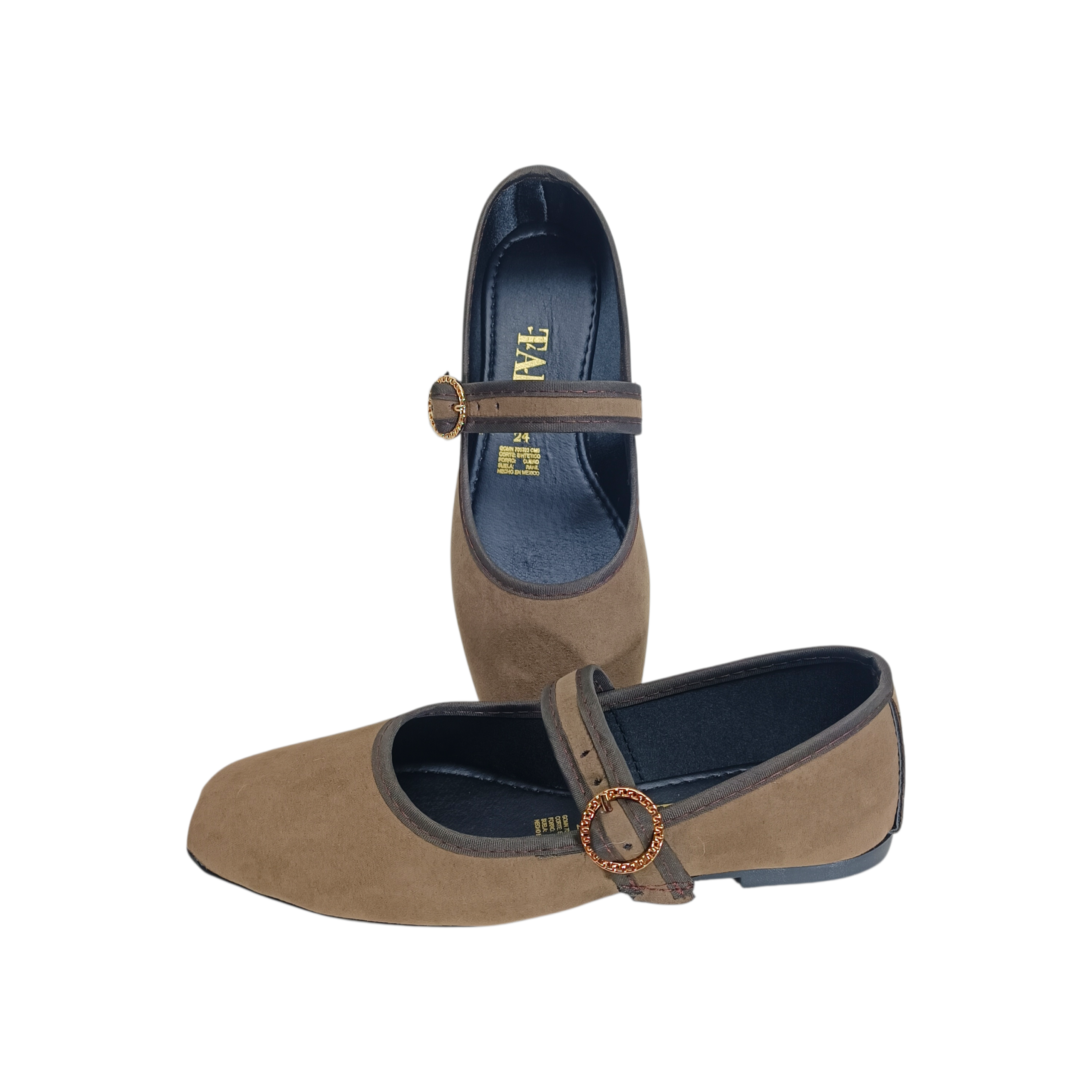 Dale un toque de color y elegancia a tu estilo con estas valerinas de mujer en coloro ferrero. Diseñadas para brindar comodidad durante todo el día, cuentan con un acabado en textura suave tipo gamuza, correa ajustable con hebilla metálica que asegura una mejor sujeción y un diseño clásico que nunca pasa de moda.