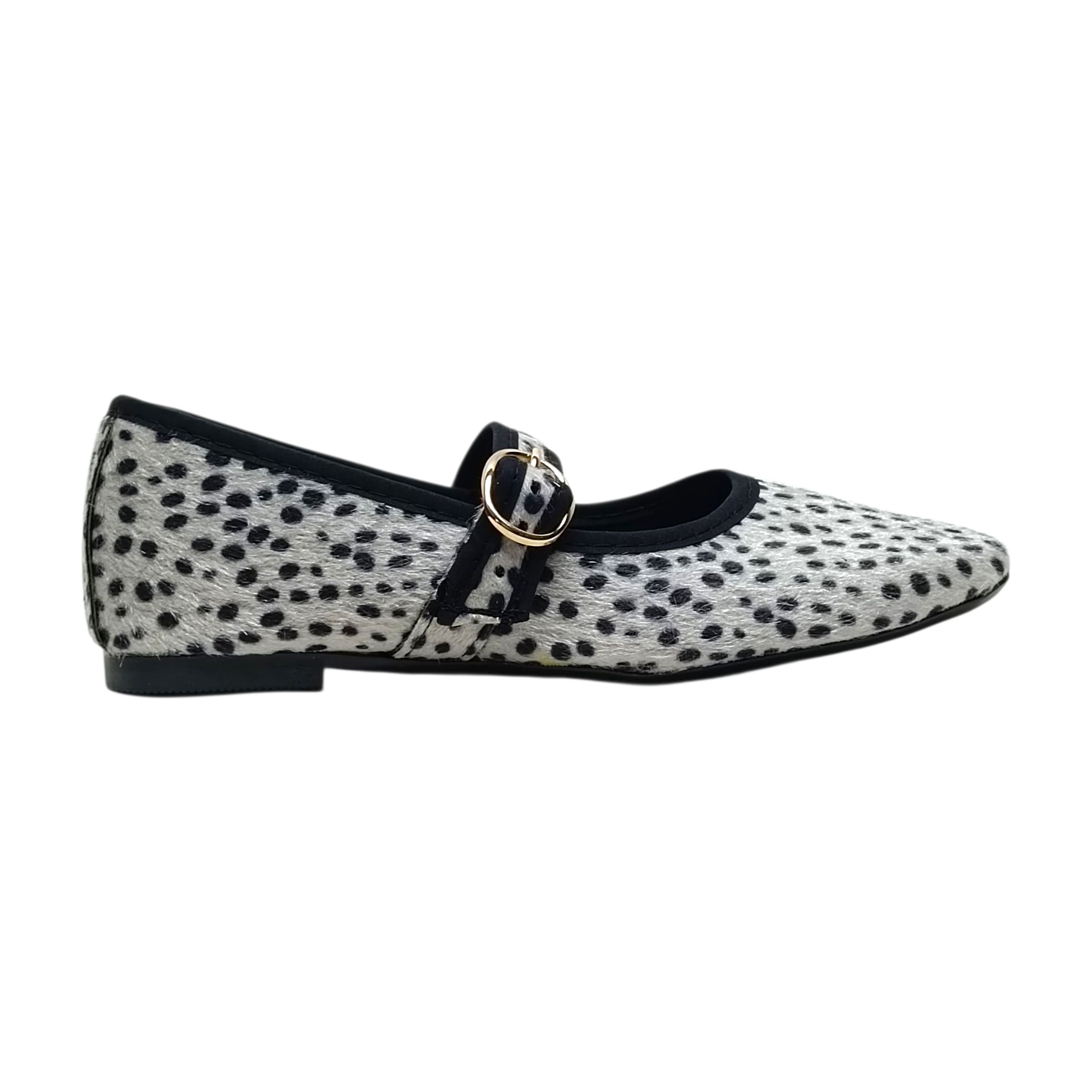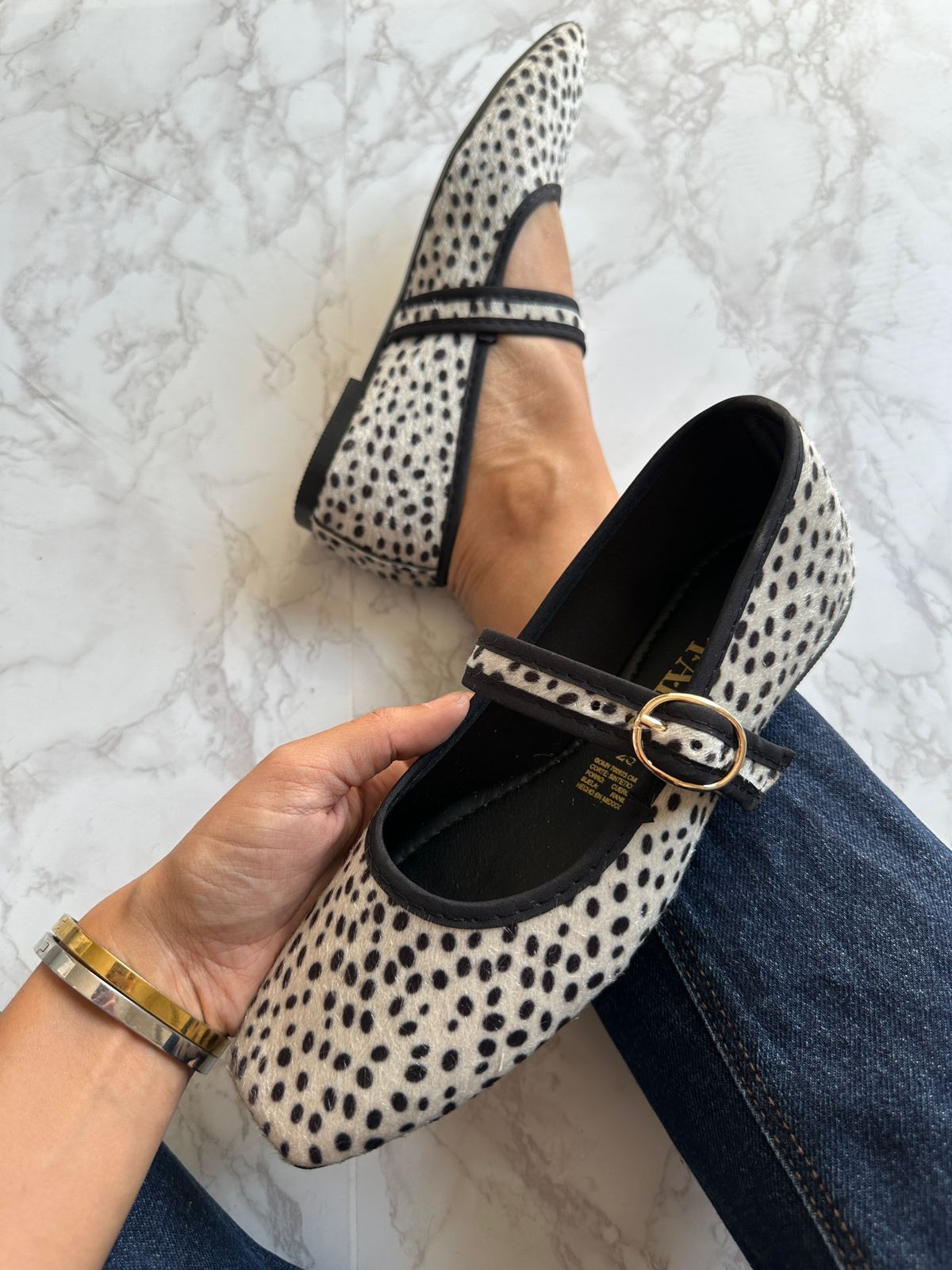 Un diseño único, atrevido y lleno de estilo. Estas bailarinas estilo Mary Jane destacan por su estampado tipo chita en tonos cálidos, perfecto para darle un toque moderno y sofisticado a cualquier look. Su hebilla metálica frontal aporta un detalle chic que equilibra lo femenino con lo urbano, creando un modelo ideal para quienes buscan un calzado que hable por sí solo.