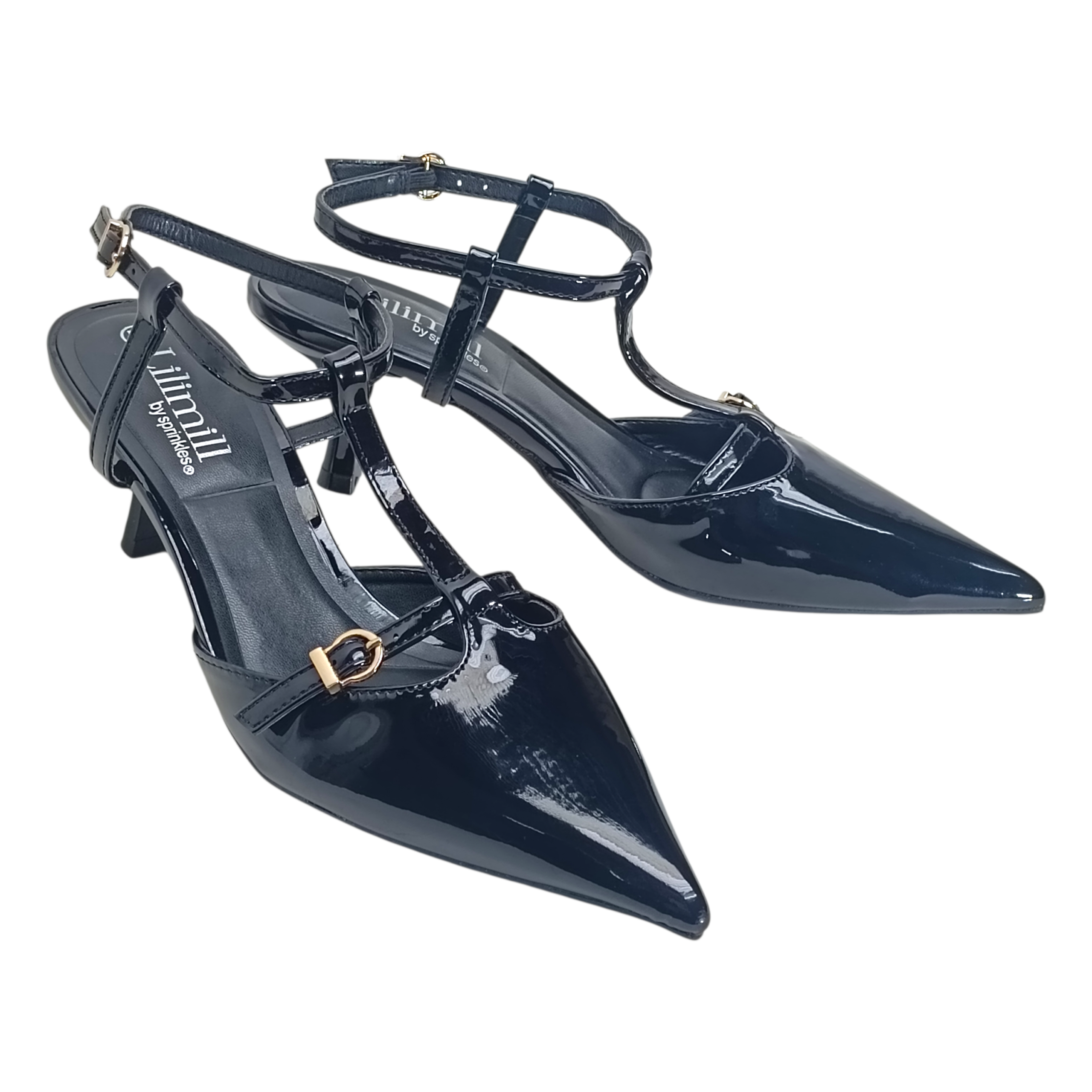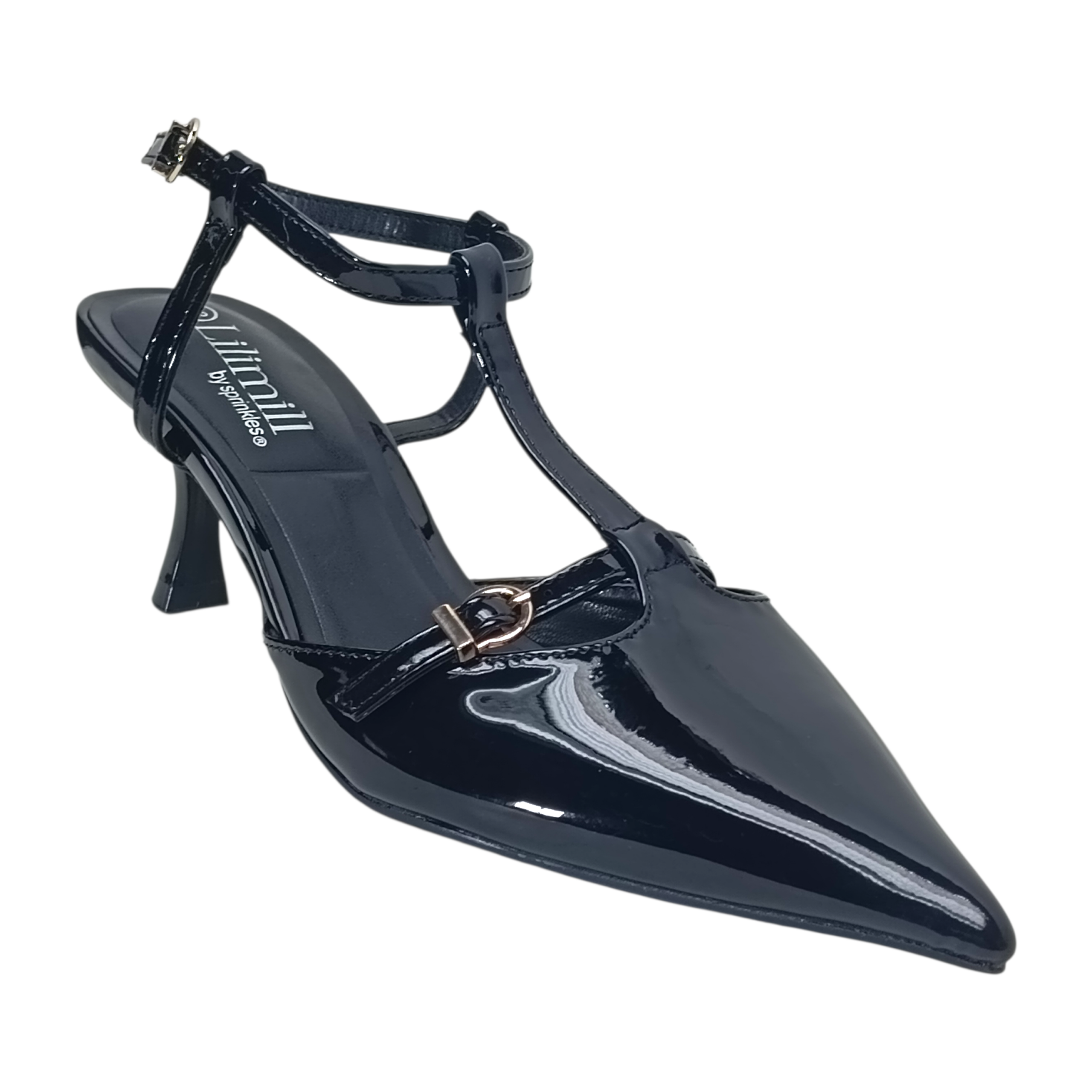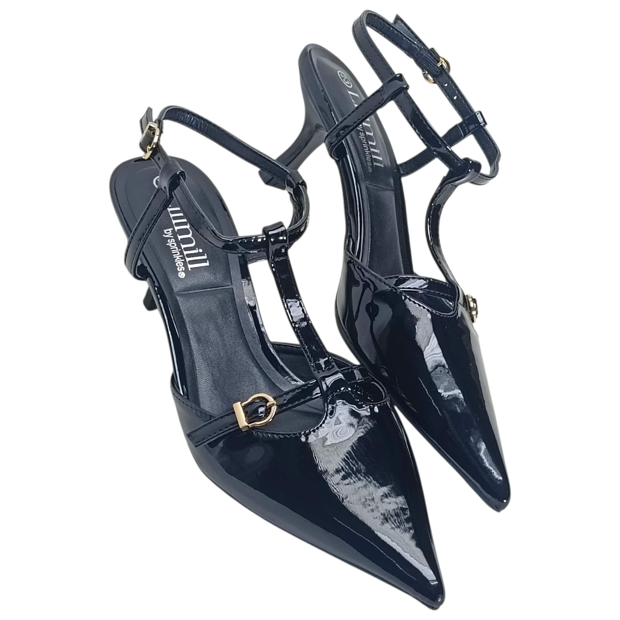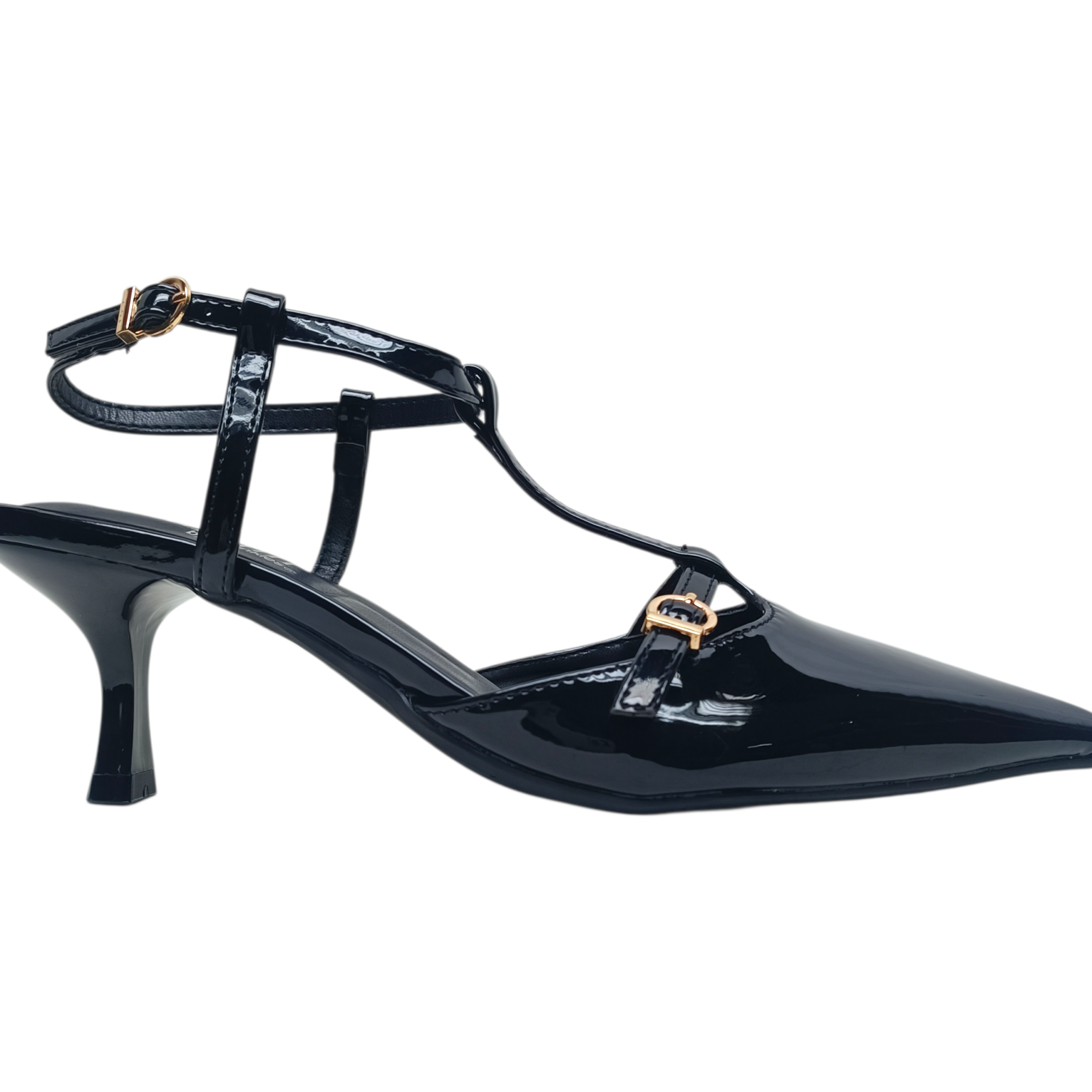 Zapatillas De Charol Negro Con Correas Cruzadas Mod. 103 0727